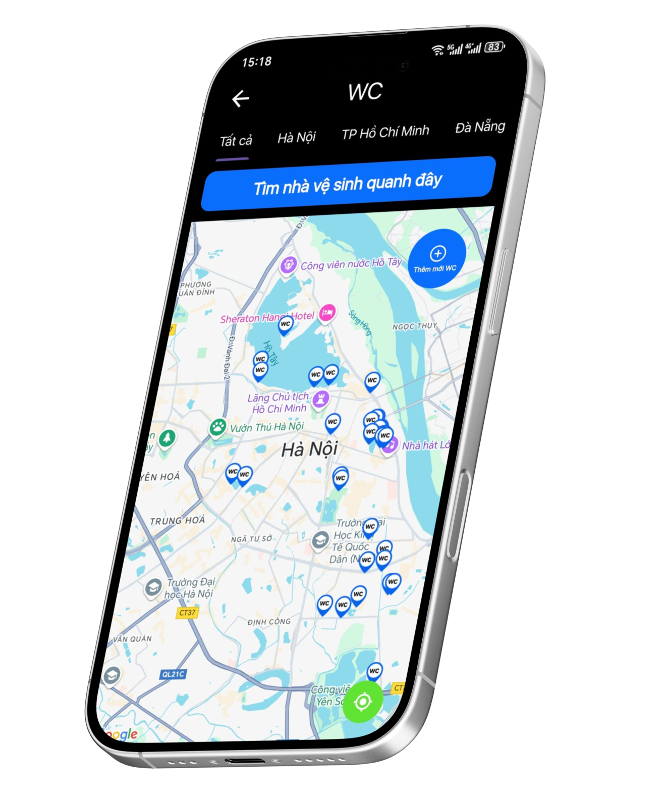 Visitors can "Search for restrooms around here" according to your coordinates or search for restrooms by province and city.