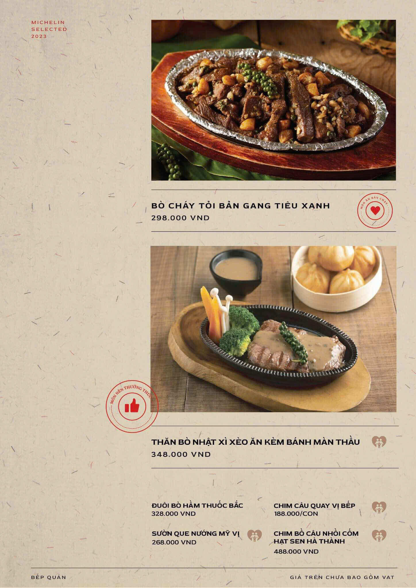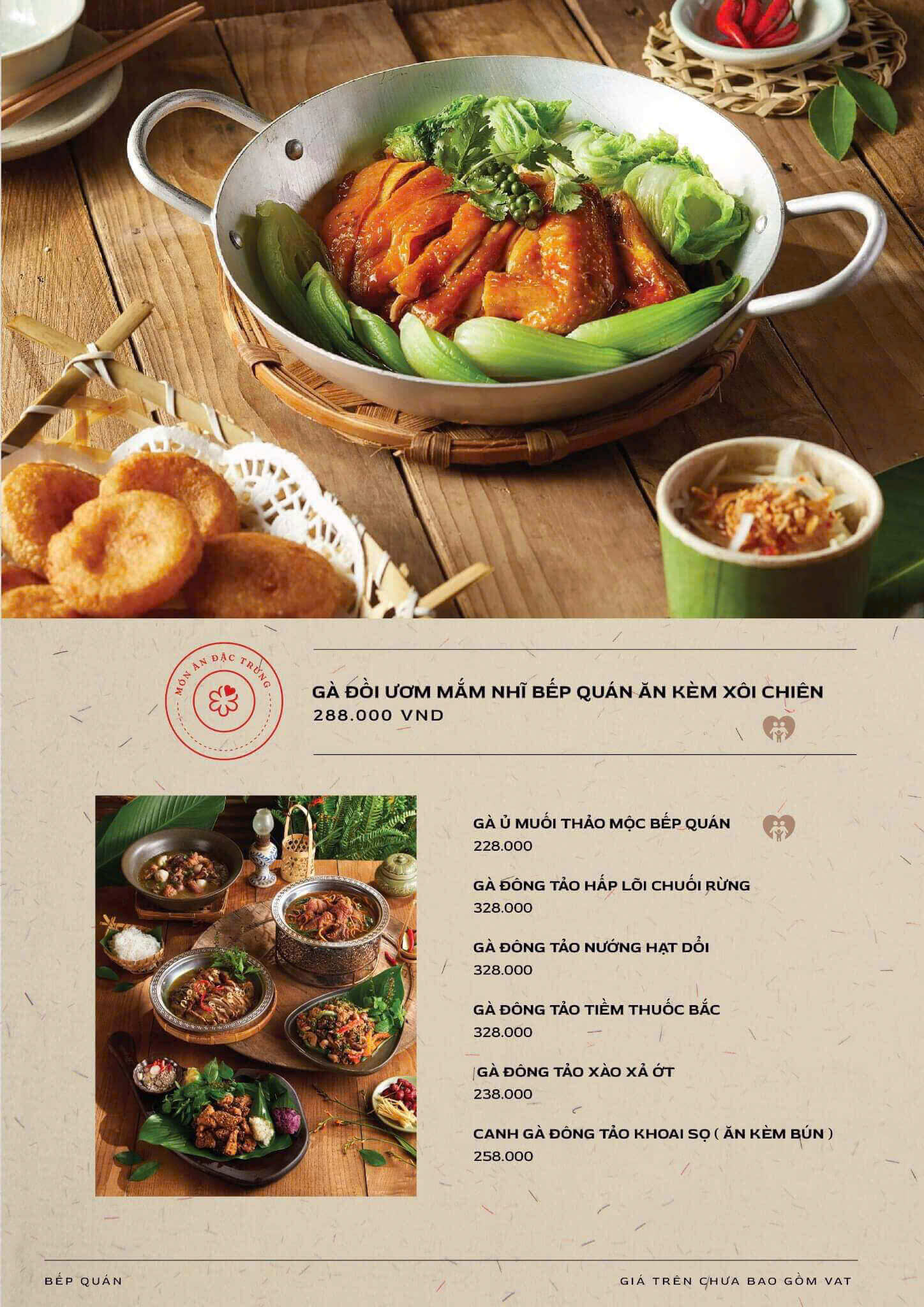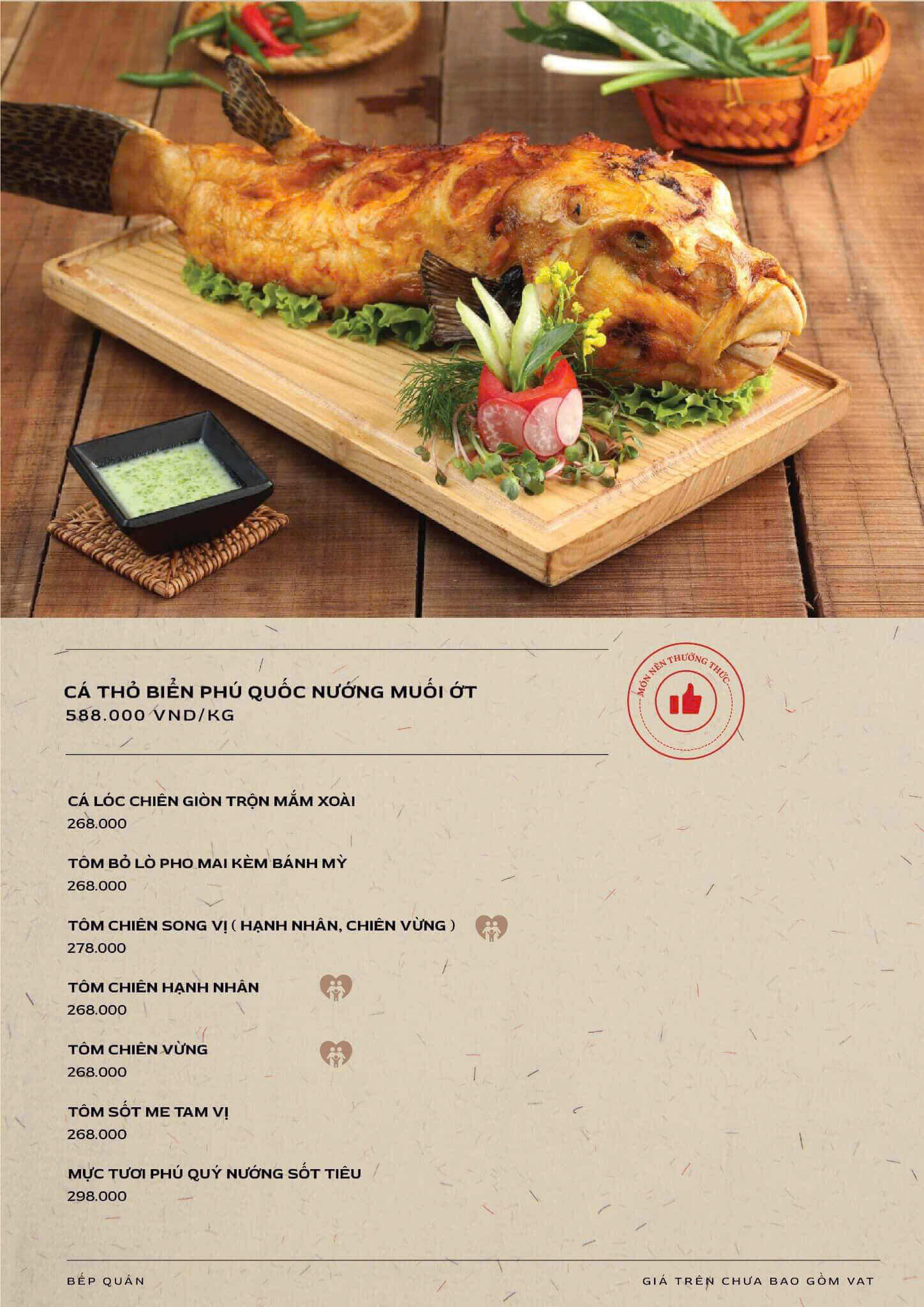 Dining at the restaurant, first-time diners will be overwhelmed by the extremely diverse menu with more than 200 delicious dishes from across the country meticulously prepared by professional chefs, each dish has its own unique character. unique characteristics of three regions' cuisine. In particular, the regular customers of Bep Quan will never forget the unique dishes such as: Millet hotpot, Gourd shrimp hotpot, Five-spice grilled pork cheek, Phan Thiet grilled squid with pangolin pepper, Chau Doc grilled beef ,... Surely when dining at Bep Quan for the first time, diners will want to come back many more times to be able to enjoy all the culinary quintessence of the three regions here.