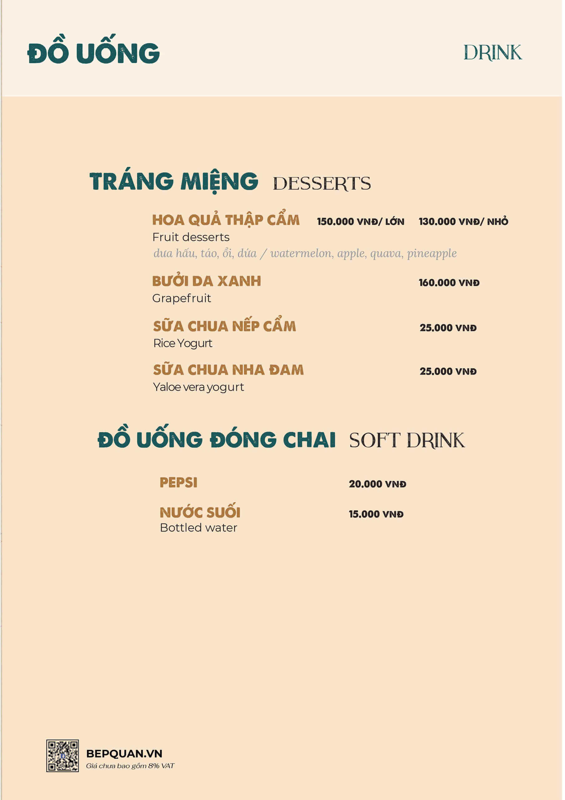 With a price of 250,000-300,000 VND/person, Bep Quan is an ideal restaurant for parties, birthdays, meetings with family, friends, and colleagues.