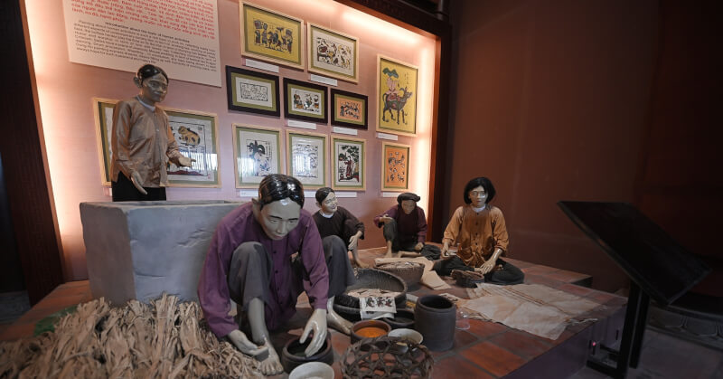 ドンホー絵画村を訪問: パゴダからすぐの距離にあり、訪問者はホタテ貝や森の葉からの自然な色を使用して手刷りの絵画のプロセスに参加できます。
