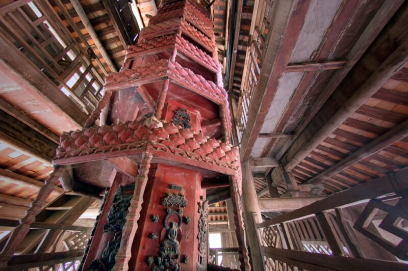 回転モルタルは 9 階建てですティク ティエン アムの建物内に厳かに位置する、軸を中心に回転できる八角形の木造建築物。すり鉢の各階には、涅槃へ続く階段を象徴する仏像や蓮の花が彫られています。観光客はよくここを訪れ、仏陀の名前を唱えながら、魂の平安と解放を祈りながら、すり鉢を回す儀式を体験します。