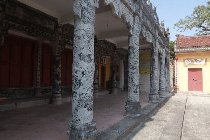 Đền Đá còn gọi là đình Đá thuộc thôn Nam Hà, xã Tân Thịnh, huyện Nam Trực, tỉnh Nam Định. Đền Đá thôn Nam Hà là di tích thờ ba anh em họ Vũ là những vị tướng thời Hùng Vương, trong đó người em út là Vũ Uy được tôn làm thành hoàng làng. Ngoài ra còn có bài vị thờ hai người anh của ngài là Chính Ngọ và Gia Sửu. Theo cuốn Kim Âu ngọc phả được viết năm Hồng Phúc thứ nhất (1572), hiện còn lưu giữ tại đền thì vùng đất Kim Âu xưa kia, nay là các thôn Nam Hà, Võ Lao Thượng, Võ Lao Hạ thuộc xã Tân Thịnh. Vào thời Hùng Vương thứ 18 ở vùng ái Châu (Hoằng Hóa, Thanh Hóa) có ông Vũ Công rời quê ra đi tìm vùng đất mới để sinh cơ lập nghiệp. Từ Thanh Hóa ông đi đến vùng đất Kim Âu. Được nhân dân nhiệt tình chào đón, ông vui mừng ở lại dựng nhà và mở trường dạy học. Thời gian sau Vũ Công được dân làng vun đắp lấy người con gái họ Hoàng tên gọi là Loan. Ít lâu sau bà Loan sinh được hai người con trai. Người anh đặt tên là Gia Sửu, người em đặt tên là Chính Ngọ. Năm sau bà Loan đột ngột qua đời, Vũ Công lại phải kết duyên với bà Trần Thị Thịnh để lấy người nuôi dạy hai con. Vài năm sau bà Thịnh sinh ra cho ông một bé trai tuấn tú nhưng lạ thay trên trán cậu bé có chữ Vũ Uy và sau lưng có hàng vảy cá. Vũ Công liền đặt tên cho con là Vũ Uy. Lớn lên Vũ Uy cùng hai anh theo thầy học đạo. Ba ông đều rất thông minh lại am hiểu thiên văn, địa lý và giỏi võ nghệ. Khi cha mẹ qua đời cả ba ông cùng tìm về kinh đô Văn Lang giúp vua Hùng cai quản bờ cõi trong gần 20 năm. Ba ông đã đóng góp nhiều công sức của mình trong cuộc chiến đấu với quân Thục. Khi Hùng Vương nhường ngôi cho Thục Phán, vì không thuần phục chủ mới nên cả ba ông đã tìm về đất Kim Âu chia xã làm ba thôn và mỗi người cai quản một thôn, rồi giúp nhân dân phát triển nông tang, ngành nghề và tiếp tục mở trường dạy học cho con em nhân dân trong vùng. Ghi nhớ công lao đó nên sau khi các ông qua đời dân làng lập đền thờ tưởng niệm. Ngoài việc thờ ba vị tướng thời kỳ Hùng Vương, đền Đá còn thờ 12 vị tổ (thập nhị gia tiên tổ) của 12 họ sớm về đây lập làng. Đền còn phối thờ hai vị đại khoa họ Hoàng và họ Lưu để nhân dân địa phương ghi nhớ truyền thống hiếu học của mình, khích lệ con cháu phát huy niềm tự hào đó. Đền Đá xã Tân Thịnh là một công trình kiến trúc lớn tọa lạc trên khu đất cao, với diện tích 2 mẫu (bắc bộ) ở giữa cánh đồng xa làng xóm. Xung quanh có nhiều cây lưu niên hòa nhập với kiến trúc công trình thành một tổng thể hoàn chỉnh. Qua nhiều lần tu sửa, tôn tạo công trình hiện nay còn 4 tòa chính và một dãy giải vũ về phía bắc. Tòa bái đường 5 gian được tôn tạo cách đây hơn 60 năm, kiến trúc hoàn toàn bằng đá, nhưng vẫn giữ được phong cách cổ truyền của dân tộc. Bên trong bái đường là hai tòa đệ nhị và đệ tam. Tòa đệ tam gồm 5 gian, được tu sửa năm 1877. Tòa đệ nhị cũng có 5 gian, được trùng tu vào đời vua Thành Thái năm thứ 4 (1892). Hiện nay tại tòa đệ nhị vẫn giữ được nhiều dáng vẻ kiến trúc cổ truyền, nổi bật là bộ cánh cửa gỗ lim được chạm nổi họa tiết lưỡng long chầu ở hai cánh cửa giữa và long chầu ở hai cánh hai bên. Lễ hội đền Đá được tổ chức vào ngày 3 tháng 3 âm lịch hàng năm. Đền Đá được Bộ Văn hóa - Thông tin công nhận là Di tích lịch sử và kiến trúc nghệ thuật. Nguồn: Báo Nam Định điện tử
