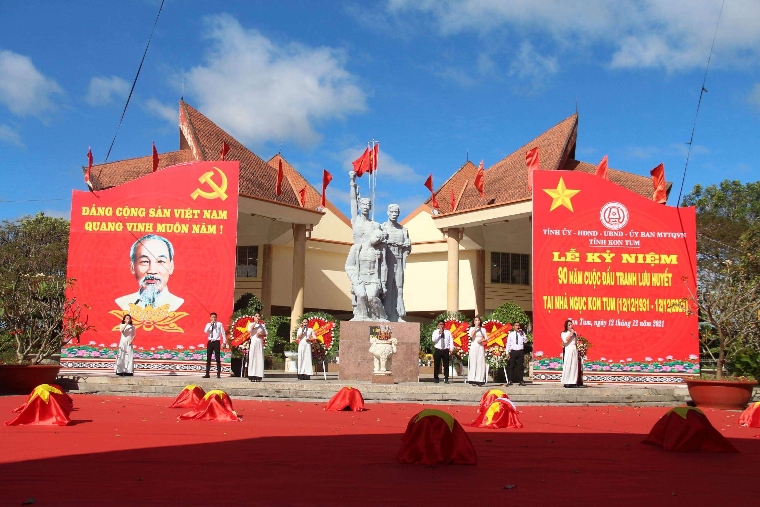 “Ngục Kon Tum” có địa chỉ tại đường Trương Quang Trọng, phường Quyết Thắng, thành phố Kon Tum. “Ngục Kon Tum” phản ánh một giai đoạn lịch sử thời kỳ đầu của phong trào đấu tranh chống quân xâm lược nước ta. Ngục Kon Tum được thực dân Pháp xây dựng từ năm 1905 đến cuối năm 1917 mới hoàn thành. Ngục Kon Tum xây bên cạnh một rãnh nước lớn kế cận ngục phía Đông - Bắc là đường 14 (nay là đường Phan Đình Phùng - trục đường Hồ Chí Minh chạy qua thành phố Kon Tum); Tây - Nam là đồn lính khố xanh; Đông - Nam là tòa sứ, dinh quản đạo bù nhìn, Sở Cảnh sát. Chúng đặt Ngục Kon Tum vào thế bị bao vây cô lập. Để dễ bề kiểm soát chúng đào một rãnh sâu dài 150m, rộng 100m, thiết kế tại đó bốn dãy nhà theo hình hộp (vuông) diện tích khoảng 2,5ha, bốn góc ngục có 4 lô cốt xây nổi lên, đêm ngày canh phòng cẩn mật. Nhà lao xây theo kiểu pháo đài Vauban (Vô-băng) xưa của Pháp thuộc thế kỷ 17. Mái lợp ngói, vách bằng tocsi quét vôi, bốn bề không có tường bao quanh che kín như các nhà lao khác, bốn nhà dọc ngang xây liền lại với nhau thành một hình vuông, mỗi bề 18m thì có một cửa ra vào và hai chòi cao để lính gác có thể quan sát trong và ngoài lao; ở giữa là một cái sân vuông nhỏ hẹp, bề rộng của một dãy là 3,5m trong đó để 2m lát ván nằm, 1,5m là đường đi, người nằm trên sàn ván nhìn thấy ngoài sân. Ngục tù Kon Tum là nơi giam giữ tù binh chính trị bị thực dân Pháp áp giải từ Nghệ An, Hà Tĩnh, Thừa Thiên Huế về, đồng thời cũng là nơi cung cấp nhân công khai phá cao nguyên, mở đường 14. Theo số liệu ghi lại, nơi đây đã giam giữ khoảng 500 tù binh chính trị và gần một nửa trong số họ đã hy sinh. Cụ thể, trong quá trình 6 tháng làm con đường 14, thực dân Pháp đã bốc lột lao động của tù binh đến kiệt sức dẫn đến tình trạng 210 người phải bỏ mạng tại nơi này. Những năm tháng kháng chiến chống Pháp, ngục tù Kon Tum được xem là lò giết người tàn bạo nhất. Ngục Kon Tum từng là nơi nổ ra rất nhiều cuộc biểu tình của các chiến sĩ cộng sản để phản đối việc bắt tù nhân đi làm đường ở Đắk Pô. Tuy những cuộc biểu tình tại đây đều bị thực dân Pháp tàn sát đẫm máu nhưng sự hy sinh này đã khiến chúng thừa nhận sự thất bại và buộc phải đóng cửa vào năm 1935. Có thể nói, ngục tù Kon Tum chính là bằng chứng tố cáo tội dã man mà thực dân Pháp đã gây ra cho đồng bào ta trong giai đoạn 1930 - 1931. Đồng thời, đây cũng là biểu tượng cho sự kiên cường, bất khuất đấu tranh bảo vệ Tổ quốc của các chiến sĩ cộng sản tại mảnh đất Kon Tum. Năm 1975 khi chiến tranh kết thúc, ngục tù Kon Tum trở thành Di tích lịch sử của miền Nam Việt Nam. Sau tàn tích của chiến tranh, ngày nay di tích chỉ còn lại mộ và bia tưởng niệm của 8 chiến sĩ cách mạng. Năm 1990, ngục tù Kon Tum được công nhận là khu Di tích lịch sử văn hoá cấp Quốc gia. Nguồn: Cổng thông tin điện tử tỉnh Kon Tum