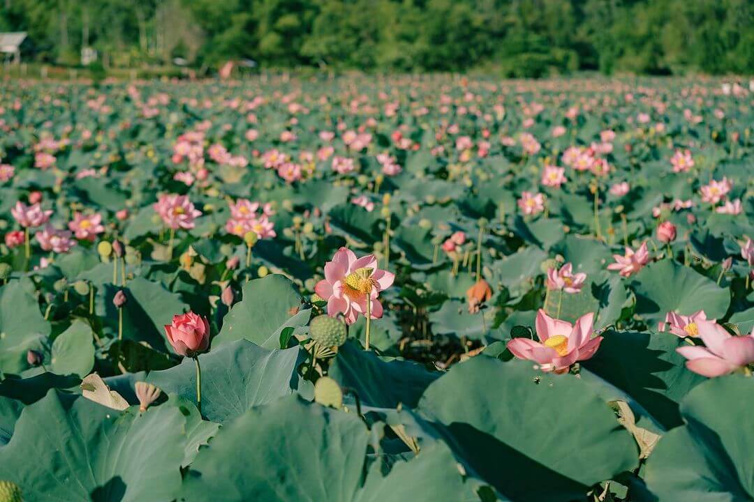 Điều đặc biệt ở đầm sen Trà Lý là hoa sen nở rộ suốt mùa hè,tạo nên một bức tranh sống động với đủ sắc màu từ trắng tinh khôi đến hồng thắm. Những cánh hoa mỏng manh nhưng lại toát lên vẻ đẹp thanh tao,kiêu sa. Mình thật sự bị cuốn hút bởi hương thơm dịu nhẹ,thoang thoảng trong không khí,khiến cho tâm hồn mình trở nên thanh tịnh và nhẹ nhàng hơn.