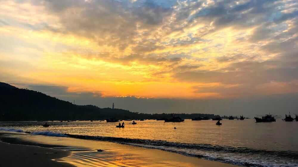* Beautiful sunset: The moment sunset falls,Non Nuoc Beach takes on a romantic beauty,with the last rays of sunlight dyeing the sea and sky golden.