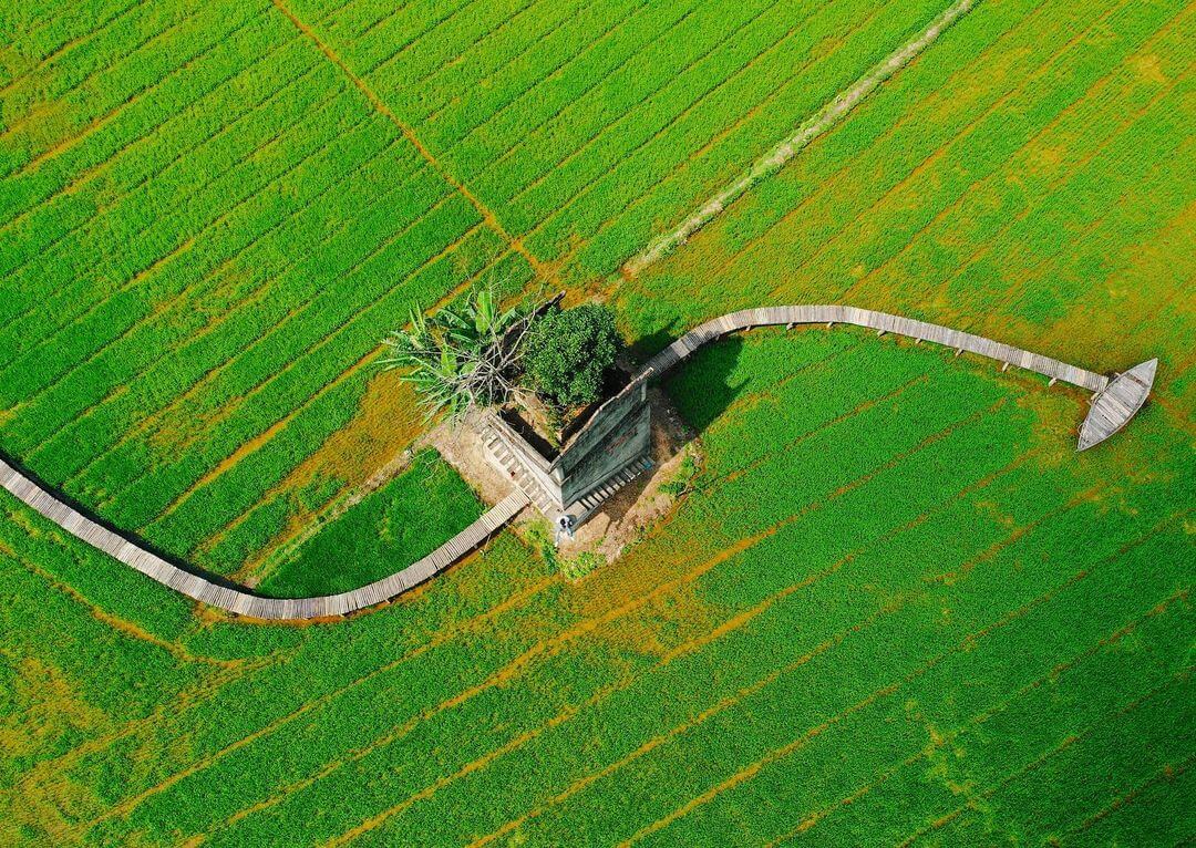 Một điểm đặc biệt tại lò gạch cũ Duy Vinh là khung cảnh xung quanh với những cánh đồng lúa bạt ngàn và những con đường đất đỏ uốn lượn. Không khí ở đây rất trong lành và yên bình,khác hẳn với sự nhộn nhịp của phố cổ Hội An. Du khách có thể thuê xe đạp để dạo quanh,tận hưởng không gian thiên nhiên và chụp những bức ảnh "sống ảo" tuyệt đẹp.