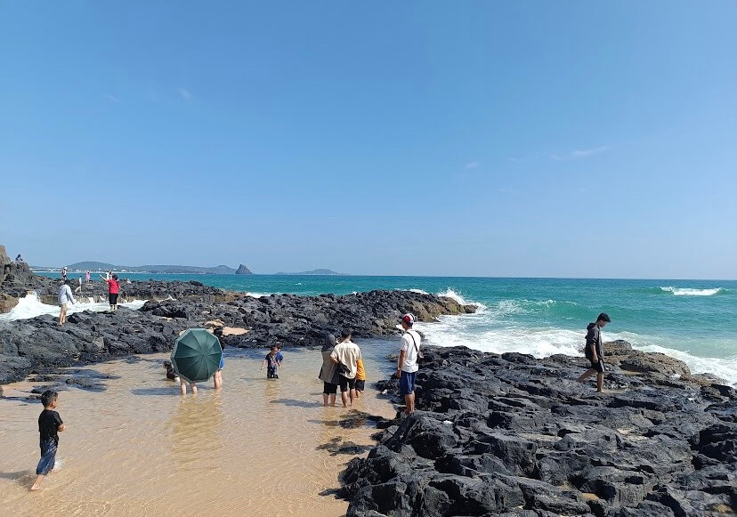When coming to Bai Xep,you will be amazed by the grandeur of nature,with rugged rocky cliffs,vertical rock walls,and lush green forests creating a beautiful picturesque scene. Not only that,you can also hear the waves crashing,gently dissolving on the black rocks,step on the smooth white sand,stretching all the way to the southern rocky cape.
