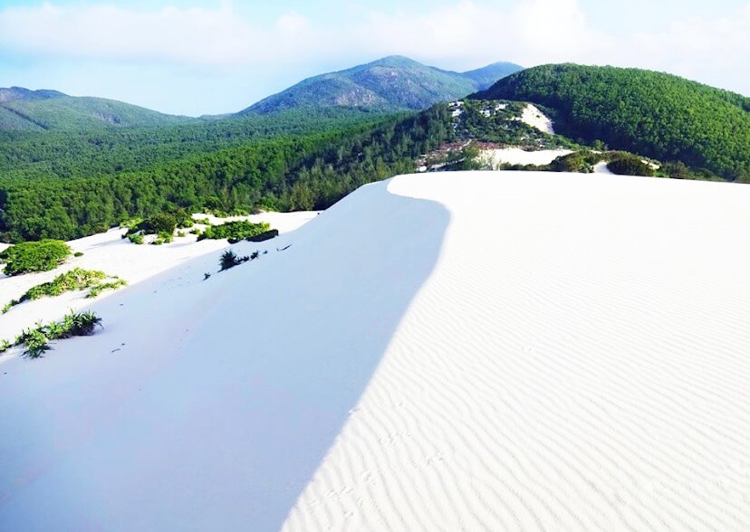 From a distance,you will see high and white sand dunes standing out with a harmonious natural landscape,intertwined with the white color of the sand and the lush green vegetation of colorful flowers,grass,and beach morning glory. It can be said that this place is a masterpiece of nature,with a formation process lasting millions of consecutive years with a unique beauty that is hard to find anywhere else.