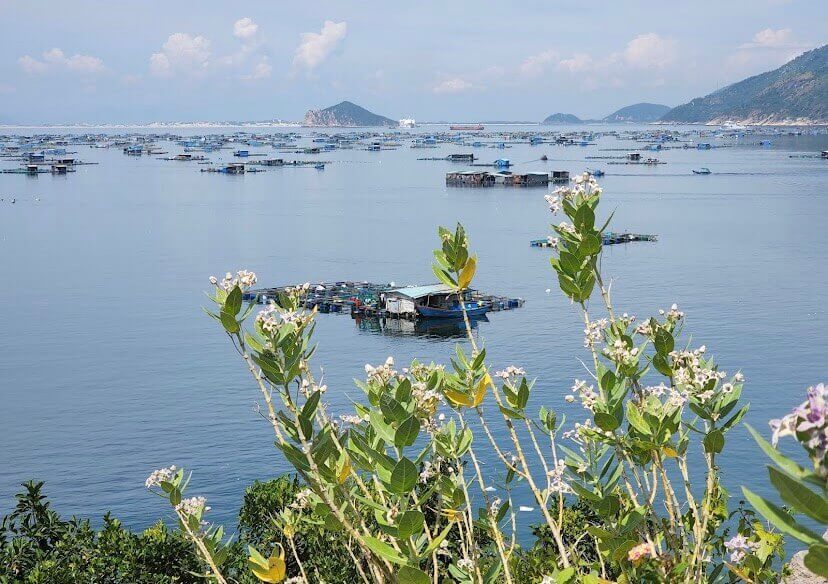 This coastal area is surrounded by 3 majestic mountain ranges and islands in the vast sea,including Deo Ca,Hon Ba,Da Bia,and Hon Nua Island. It is the maritime boundary between the provinces of Khanh Hoa and Phu Yen. We traveled by motorbike from Tuy Hoa city to here,so we fully felt the cool and refreshing air,along with the lush green vegetation along the road.