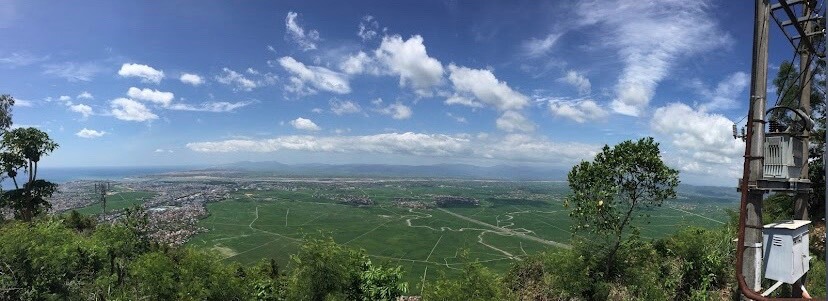 The mountain is about 400m high above sea level,the road is quite steep but easy to travel,so conquering this mountain peak is not too difficult for us. Standing on the top of the mountain and looking down,you will see a vast field,hills,the vast sky,and the bustling city of Tuy Hoa.