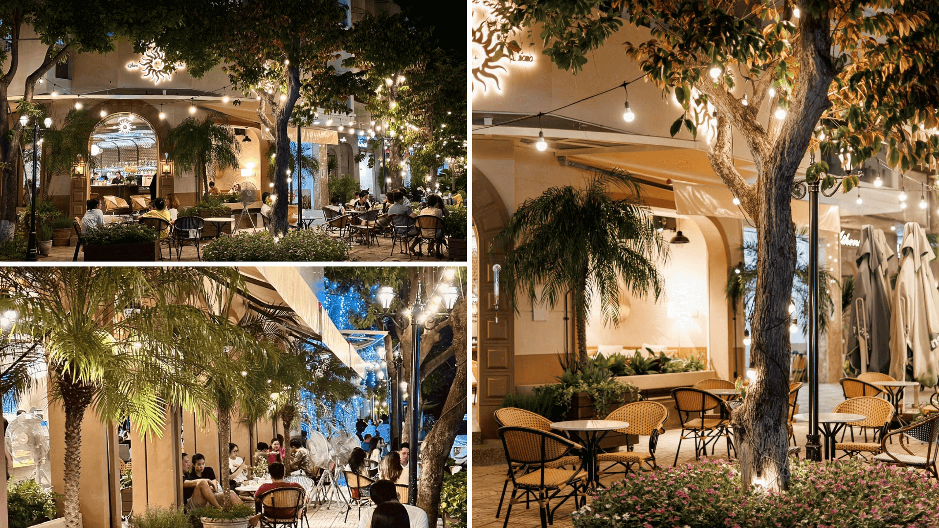 Trong khi đó,khu vực bên trong quán được bố trí hợp lý với các bàn ghế hiện đại,vừa đảm bảo sự thoải mái cho khách hàng vừa tạo cảm giác sang trọng. Dàn đèn lồng chim giữa quán không chỉ là điểm nhấn ấn tượng mà còn tạo nên không khí lung linh vào buổi tối. Đây sẽ là một địa điểm lý tưởng cho những ai cần tìm không gian làm việc yên tĩnh hoặc cho những buổi hẹn hò lãng mạn.