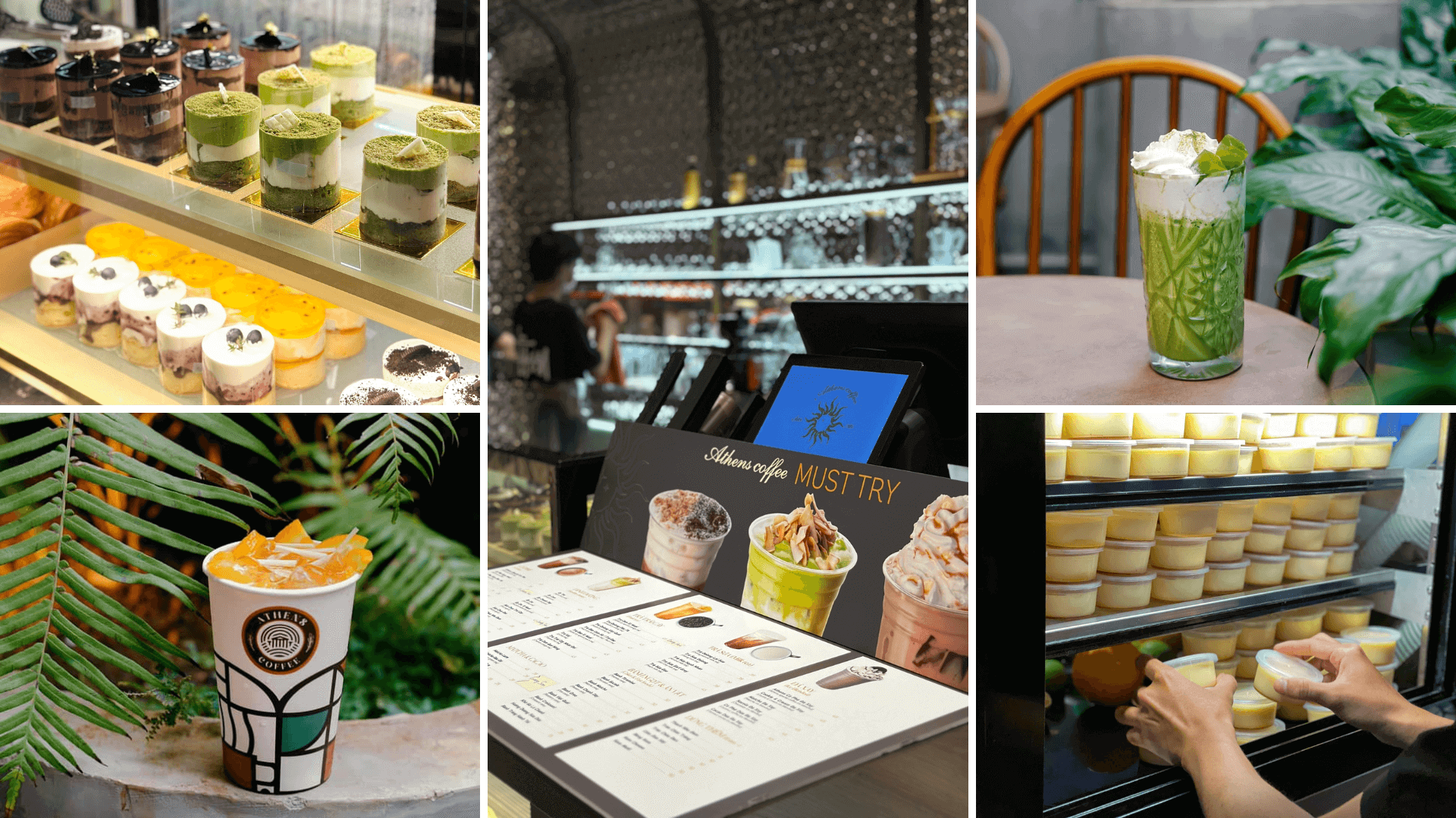 Athens Cafe không chỉ nổi bật với không gian đẹp mà còn với menu phong phú và đa dạng. Quán phục vụ nhiều loại đồ uống từ cà phê,trà,sinh tố đến các loại nước ép tươi ngon. Nếu bạn là người yêu thích cà phê,bạn có thể thử cà phê đen truyền thống,cappuccino hay latte được pha chế bởi những barista chuyên nghiệp. Đối với những ai không thích uống cà phê,quán cũng phục vụ các loại trà trái cây tươi ngon khác giúp bạn giải nhiệt trong những ngày nóng bức. Đặc biệt,Athens Cafe còn có các món sinh tố được chế biến từ trái cây tươi,rất phù hợp cho những ai yêu thích sự tươi mát và healthy.