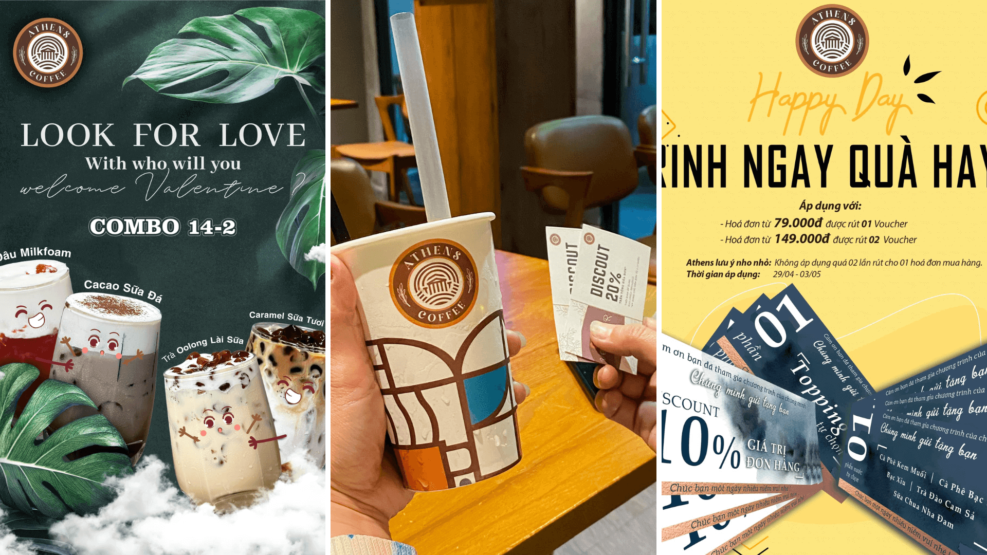 Athens Cafe thường xuyên tổ chức các chương trình khuyến mãi hấp dẫn nhằm tri ân khách hàng. Quán có những ngày ưu đãi đặc biệt,giảm giá cho các món uống hoặc các combo hấp dẫn. Điều này không chỉ thu hút khách hàng mới mà còn giữ chân khách hàng cũ quay lại nhiều lần hơn.