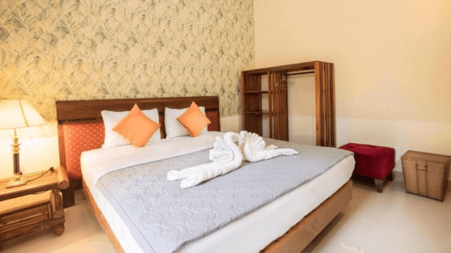 Với diện tích khoảng 30m2,phòng được thiết kế linh hoạt với 1 giường đôi cỡ lớn hoặc 2 giường đơn tùy theo lựa chọn,lý tưởng cho du khách cá nhân hoặc đôi bạn thân cùng nhau nghỉ dưỡng. Không gian phòng được trang trí với gam màu sáng,tạo cảm giác tươi mới và thoải mái,đồng thời được trang bị đầy đủ các tiện nghi cơ bản nhằm đảm bảo sự tiện lợi và trải nghiệm thư giãn trọn vẹn cho du khách.