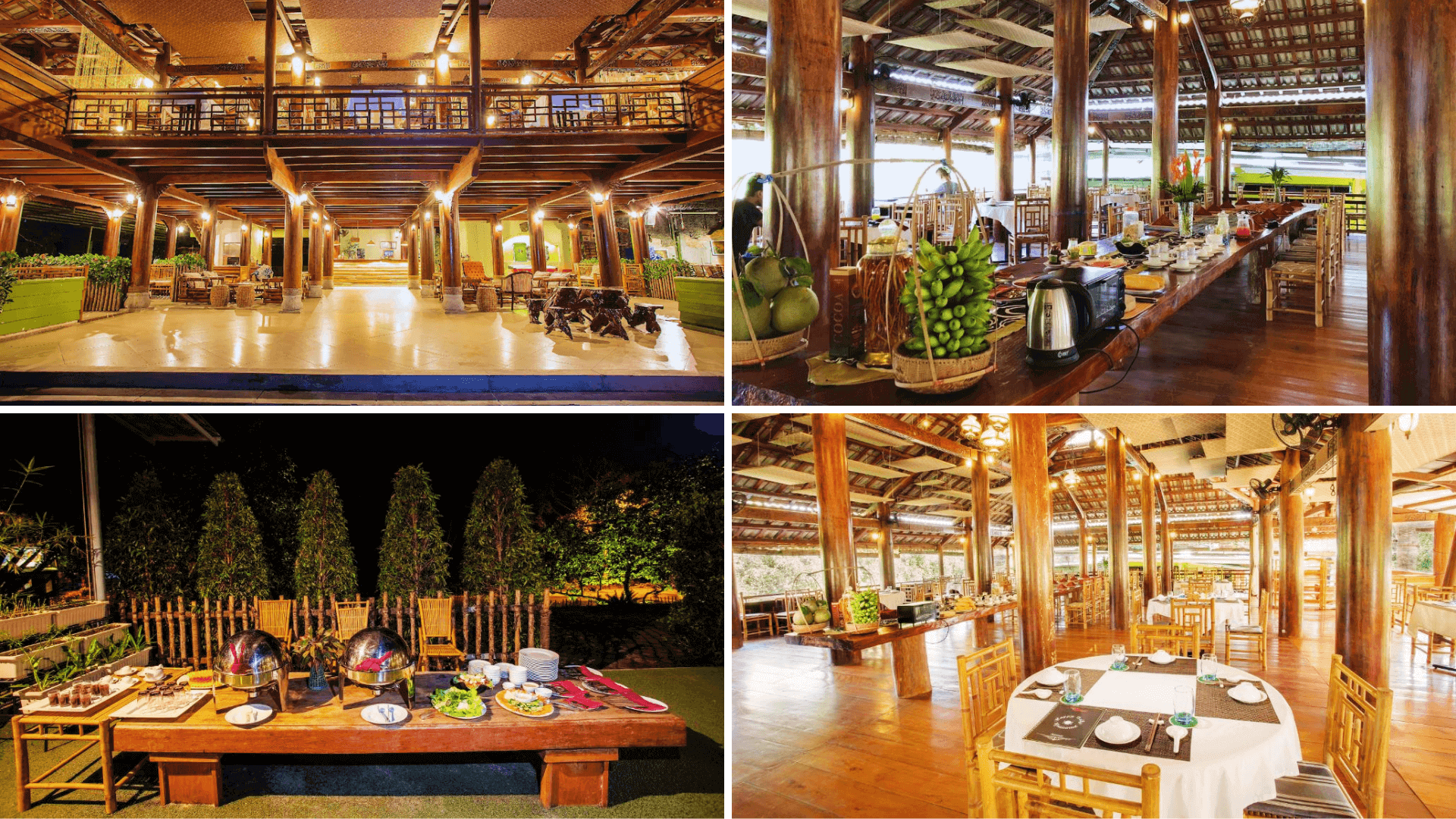 Nhà hàng Happy Belly mang đến một không gian đậm chất thiên nhiên với nội thất hoàn toàn làm từ gỗ,tạo nên sự gần gũi và ấm cúng. Nằm giữa khu vườn cây ăn trái xanh tươi,không gian rộng rãi,thoáng đãng sẽ khiến du khách cảm thấy thư giãn và hòa mình vào thiên nhiên. Tại đây,bạn có thể thưởng thức những món ăn thuần Việt đầy hương vị,tham gia buffet tự chọn phong phú và đặc biệt không thể bỏ lỡ những buổi tiệc âm nhạc cuốn hút tại DMZ Café and Bar.