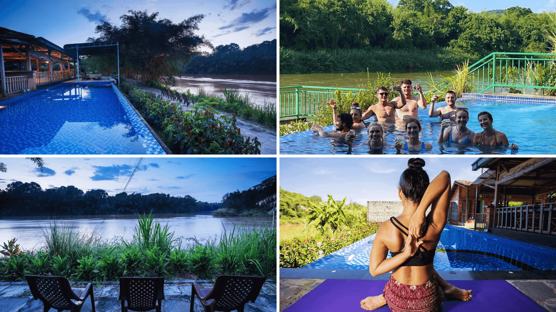 Tại Cát Tiên Jungle Lodge,du khách có thể tận hưởng không gian thư giãn tuyệt vời tại hồ bơi ngoài trời,nơi cảnh sắc thiên nhiên tươi mát bao quanh. Hồ bơi nằm giữa khu rừng cây xanh mát,mang đến bầu không khí trong lành và dễ chịu. Sau những hoạt động vui chơi,du khách có thể hòa mình vào làn nước mát lạnh,cảm nhận sự thư thái tuyệt đối dưới ánh nắng và gió trời tự nhiên.