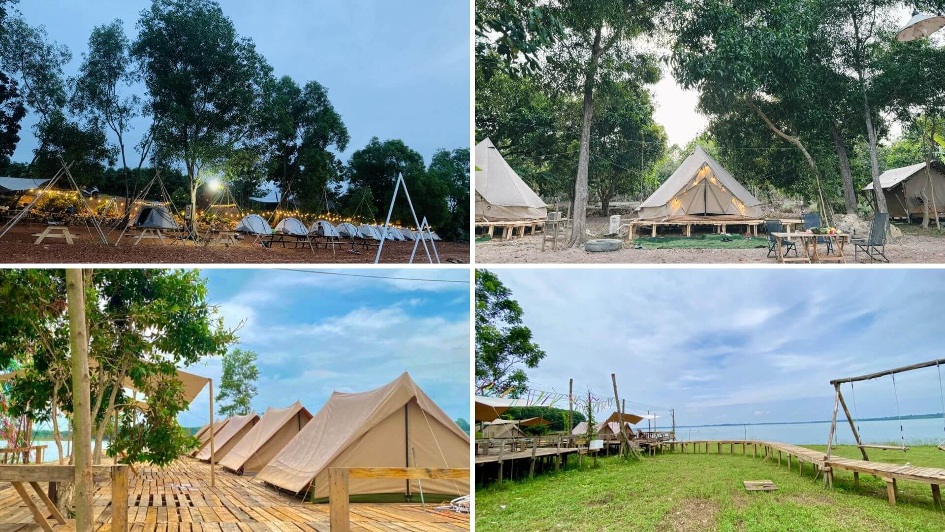 Boho Glamping là một trong những điểm cắm trại hiếm hoi tại hồ Trị An,nằm giữa khu vườn trái cây và được đánh giá cao với gần 400 lượt bình chọn 5 sao trên Google Maps. Mặc dù đường vào khu cắm trại khá vắng vẻ và bạn sẽ phải vượt qua khoảng 5km đường rừng,bù lại,khung cảnh tuyệt đẹp với hàng cây xanh mát hai bên sẽ đưa bạn đến view hồ rộng lớn và làn nước trong vắt. Tại đây,các bạn có thể trải nghiệm trọn gói các hoạt động từ ăn uống,chèo SUP đến câu cá với mức giá ưu đãi rơi vào khoảng 750.000 VNĐ/người lớn vào dịp cuối tuần.
