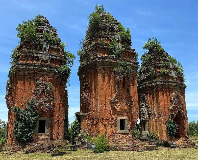 The Duong Long Tower complex consists of three towers aligned in a row,with heights of 33 meters,39 meters,and 32 meters. This architectural masterpiece holds the title of the tallest brick tower complex in Vietnam and Southeast Asia.