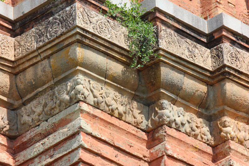 South Tower: This is the most intact tower in the complex,standing at 33 meters tall. The tower’s base has a square plan measuring 14 meters. The walls are designed with gradually projecting corners,and the roof is decorated with elephant and lion figures. However,the arch and false doors have collapsed.