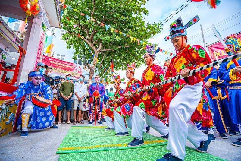 The festival begins with the Le Vong,a morning ritual to announce the start of the festival and seek the blessings of the Nam Hai deity. The ceremony includes offerings of wine and a ceremonial reading praising the whale’s role in helping the local fishermen.