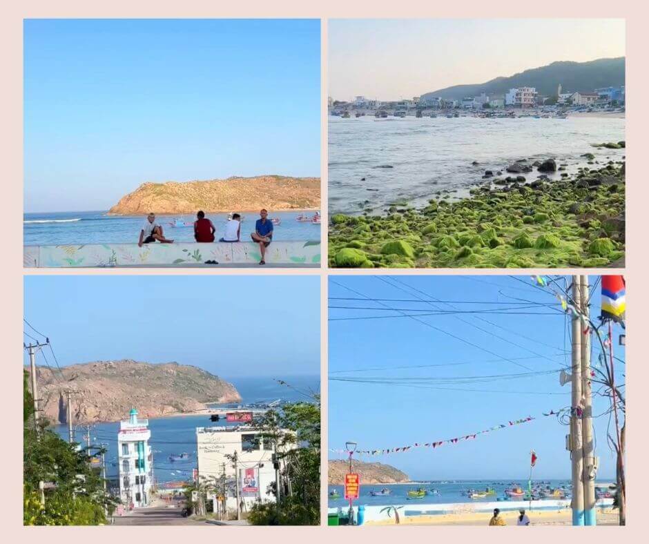 Khi đổ dốc bạn sẽ bắt gặp phía xa là hòn khô với bãi biển trong xanh tuyệt đẹp. Càng đi sâu vào trong,mình càng cảm nhận được sự gần gũi của làng từ những bức tường trang trí vô cùng bắt mắt.