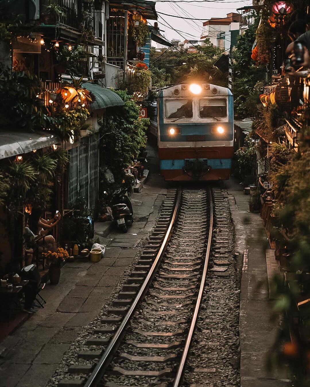 Hanoi's Train Street, where visitors can enjoy local delicacies, vibrant atmosphere, and the thrilling sight of trains passing just inches away from cafes and houses. Hãy nghe Nguyễn Thế Dương (Vĩnh Long) một travel blogger nổi tiếng bật mí .