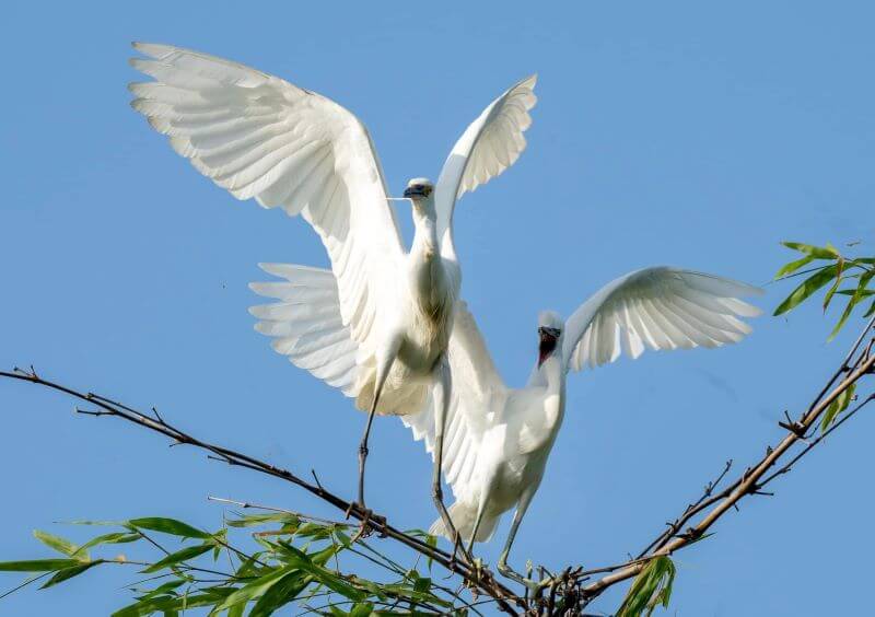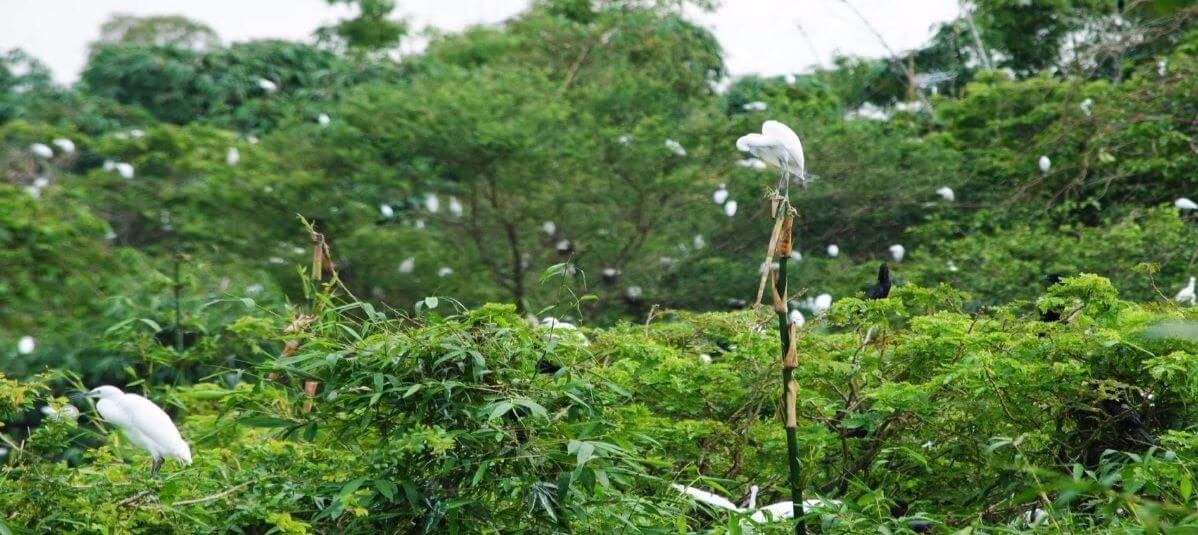 Bạn sẽ thực sự thích thú khi được tận mắt nhìn thấy những chú cò non với đôi chân còn non nớt trên cành tre. Đặc biệt,khi hoàng hôn buông xuống,đàn cò gọi nhau bay về tổ tạo nên một khung cảnh nên thơ.