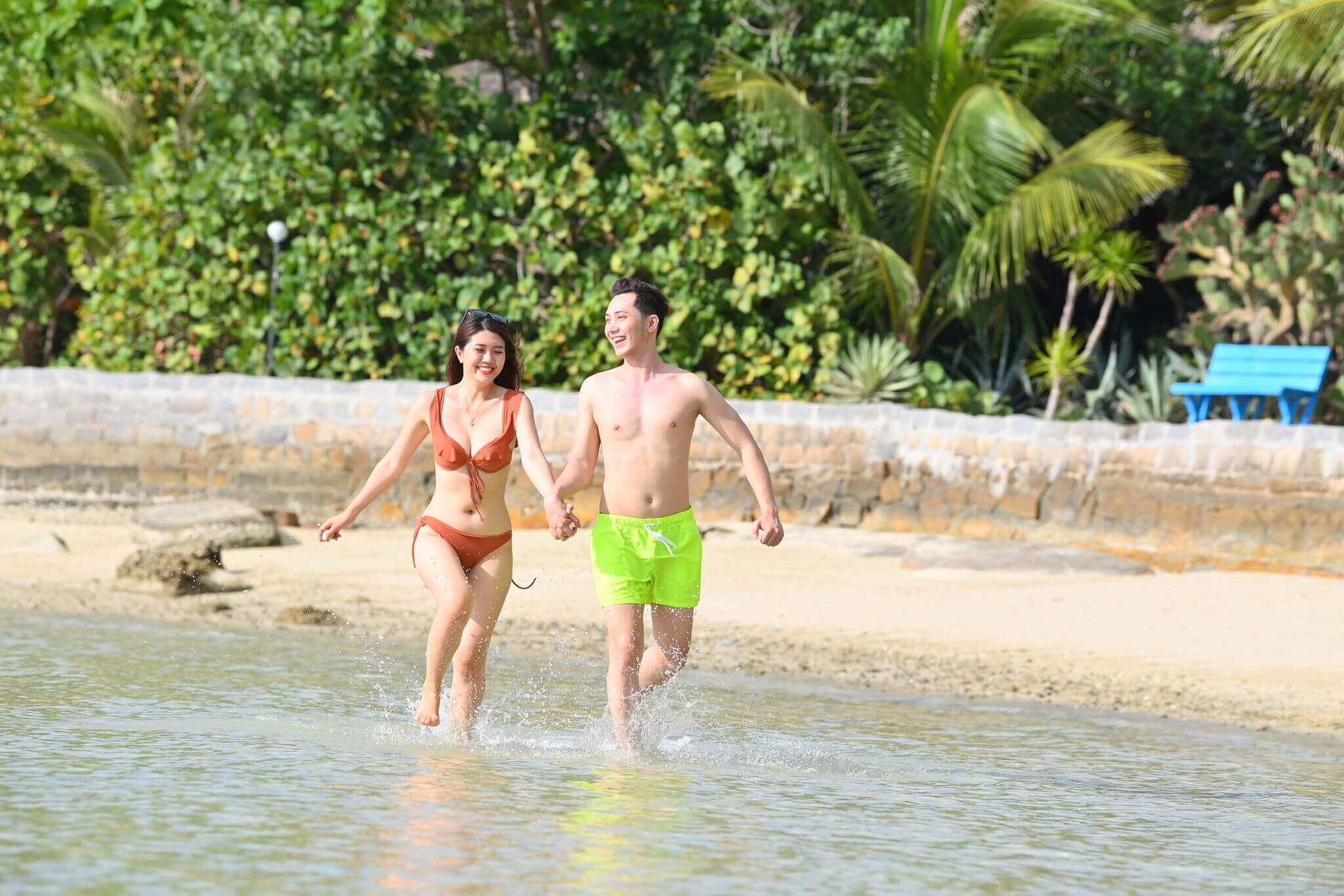 Đây là bãi biển dài và đẹp nhất trên đảo thuộc Top bãi biển Nha Trang đẹp nhất hiện nay. Khi vừa đến nơi,có lẽ các bạn chỉ muốn lao xuống để tha hồ tắm mình trong dòng nước xanh trong vắt,mặt biển phẳng lặng như gương,bãi cát trải rất dài dưới mặt nước đến nỗi có bơi ra một đoạn xa nước vẫn chỉ vừa ngang ngực..