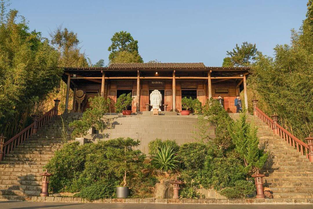 Khi đến nơi,mình như lạc vào một thế giới hoàn toàn khác. Ngôi chùa nằm trên đỉnh núi,với những mái ngói cong cong thanh thoát,những tượng Phật uy nghiêm và khu vườn xanh tươi rợp bóng cây. Mình bị cuốn hút bởi cánh cổng trời nổi tiếng,nơi mà mỗi bức ảnh đều đẹp như tranh vẽ. Đứng tại đây,hít thở không khí trong lành,ngắm nhìn mây trời bao la,mình cảm nhận được sự giao hòa giữa con người và thiên nhiên.