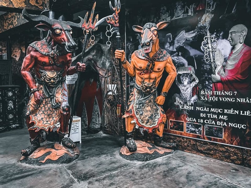 Một trải nghiệm không thể bỏ qua là khu 18 tầng địa ngục, dài 300m. Tại đây, du khách được tìm hiểu về nhân quả, nghiệp báo, sự hiếu thảo và những hình phạt ghê rợn để giác ngộ bài học sống. Đây vừa là trải nghiệm văn hóa, vừa mang giá trị giáo dục nhân văn sâu sắc.
