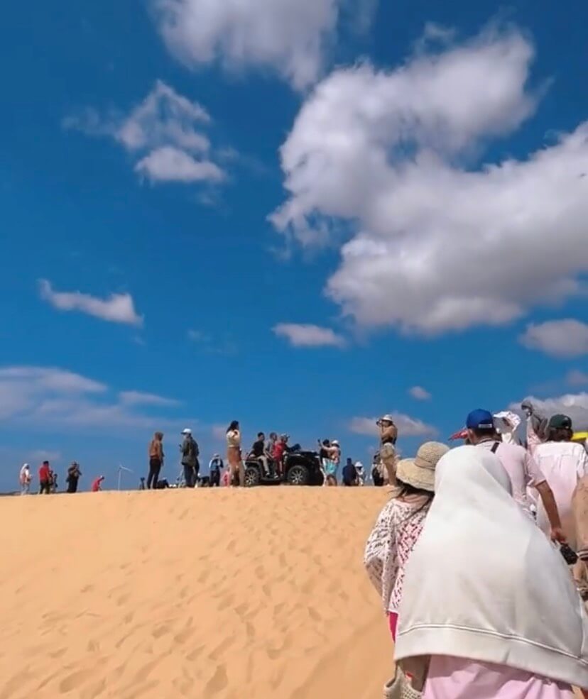 Coming here,you suddenly feel small in front of the endless white dunes,the vast stretches of sand. Not only that,you will encounter the scene of a lotus lake blooming in the middle of the white sand desert like a "wonder" that is hard to find anywhere else. You can rent a boat to relax and enjoy the cool air on this lake.