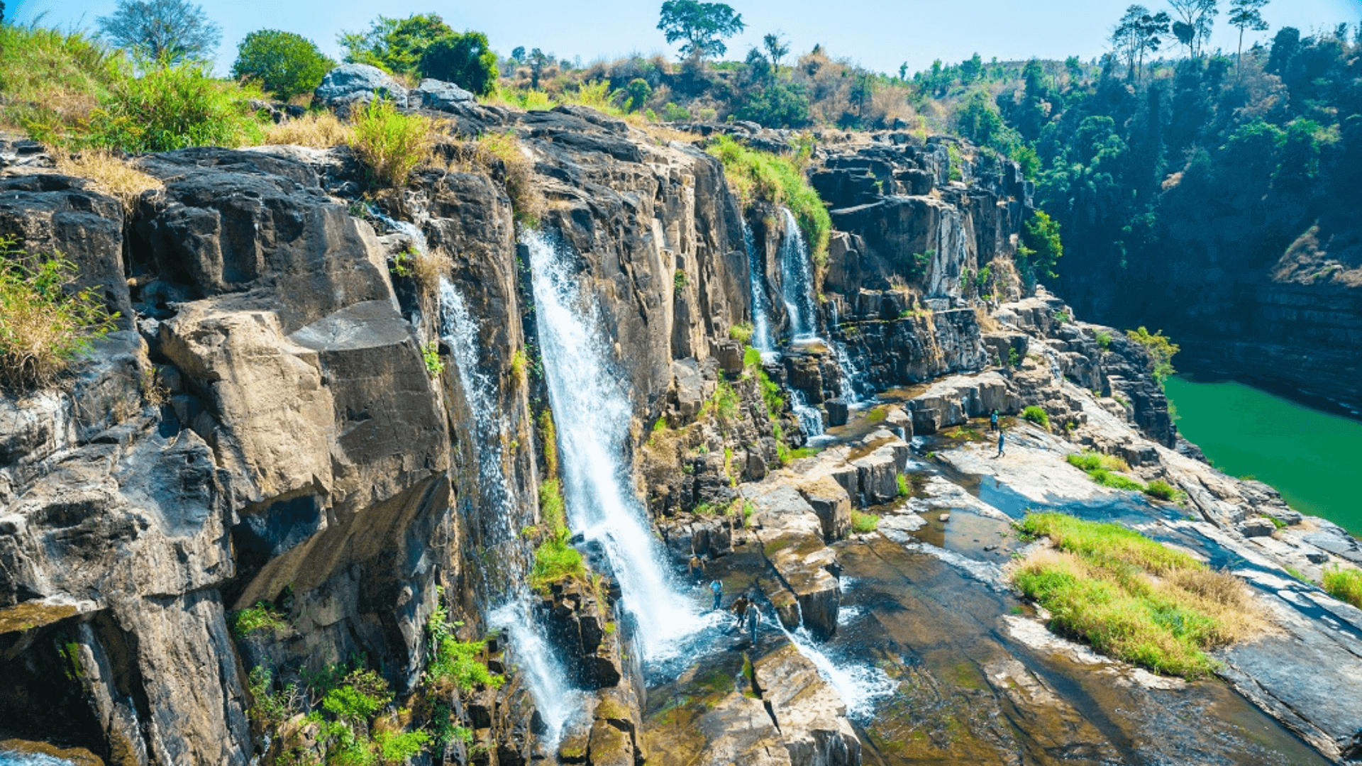 Currently,the upper flow of Pongour Waterfall is dammed to build Dai Ninh Hydropower Plant,so the flow of Pongour Waterfall is no longer as strong as before. However,the beauty of the waterfall has not diminished much.