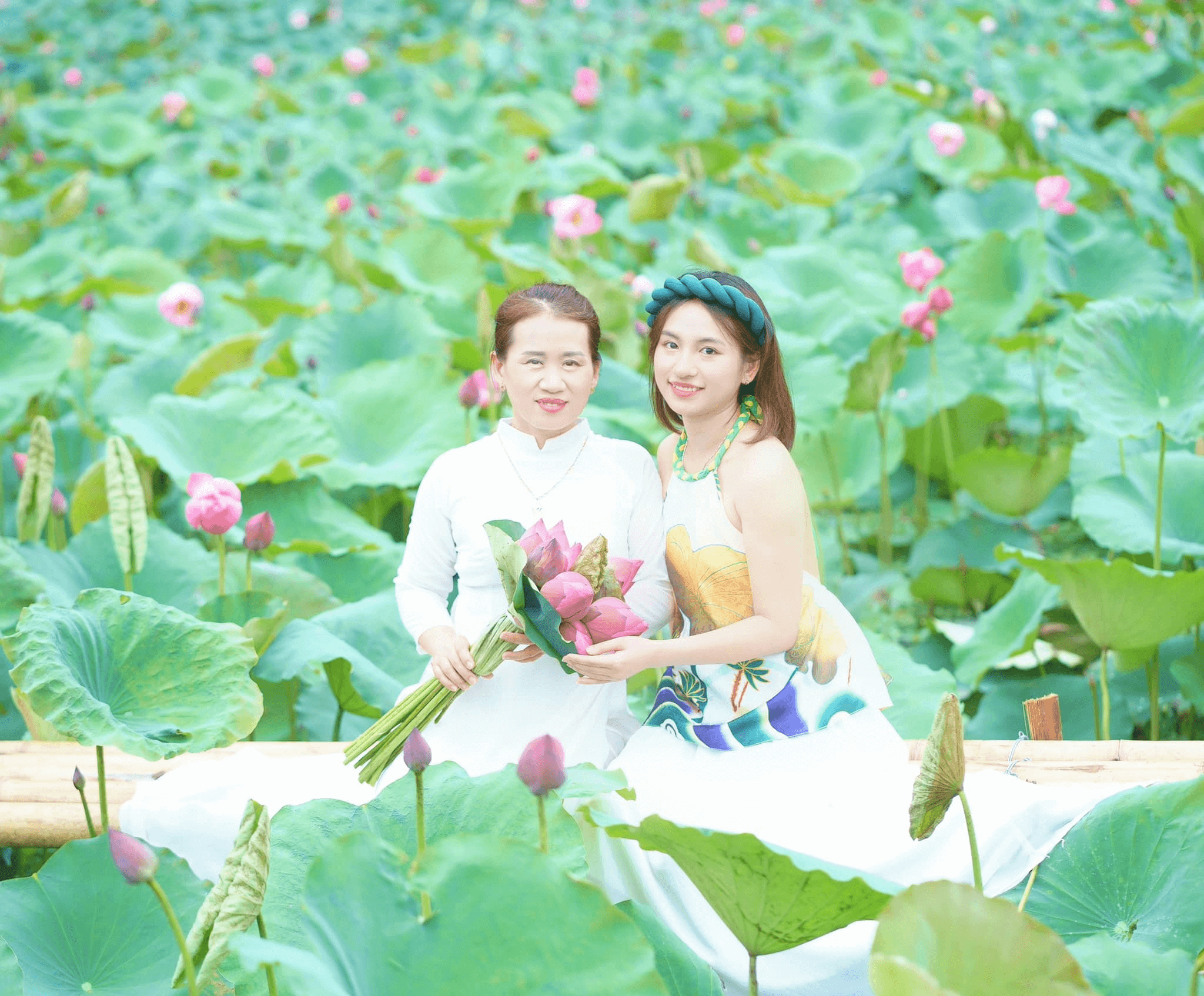 Cảm giác ngỡ ngàng khi nhìn thấy cả cánh đồng sen rực rỡ khiến Manh phải ngay lập tức sắp lịch cùng mẹ đi chụp vài tấm ảnh. Thật tuyệt khi có thể thoải mái chụp ảnh mà không cần chen lấn,cứ như đang có cả cánh đồng sen cho riêng mình.