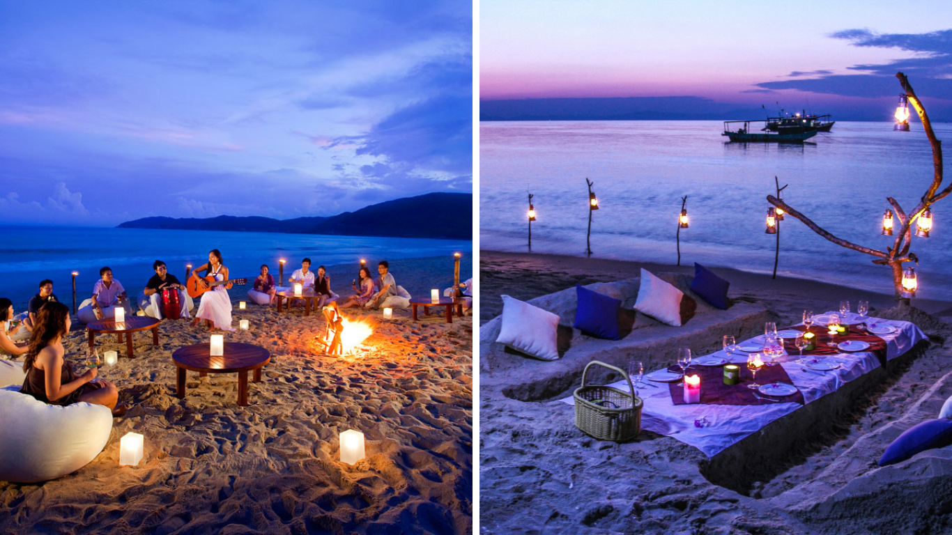 Buổi chiều, ánh hoàng hôn phủ lên biển một màu cam dịu, tạo khung cảnh rất lãng mạn. Sóng biển nhẹ hơn, gió mang theo hương mặn nồng đặc trưng của vùng biển đảo. Đây là thời điểm tuyệt vời để đi dạo ven bờ, chụp những bức ảnh kỷ niệm thật đẹp. Mình tin rằng bất kỳ ai đến đây đều sẽ lưu lại trong trí nhớ một khung cảnh khó quên.