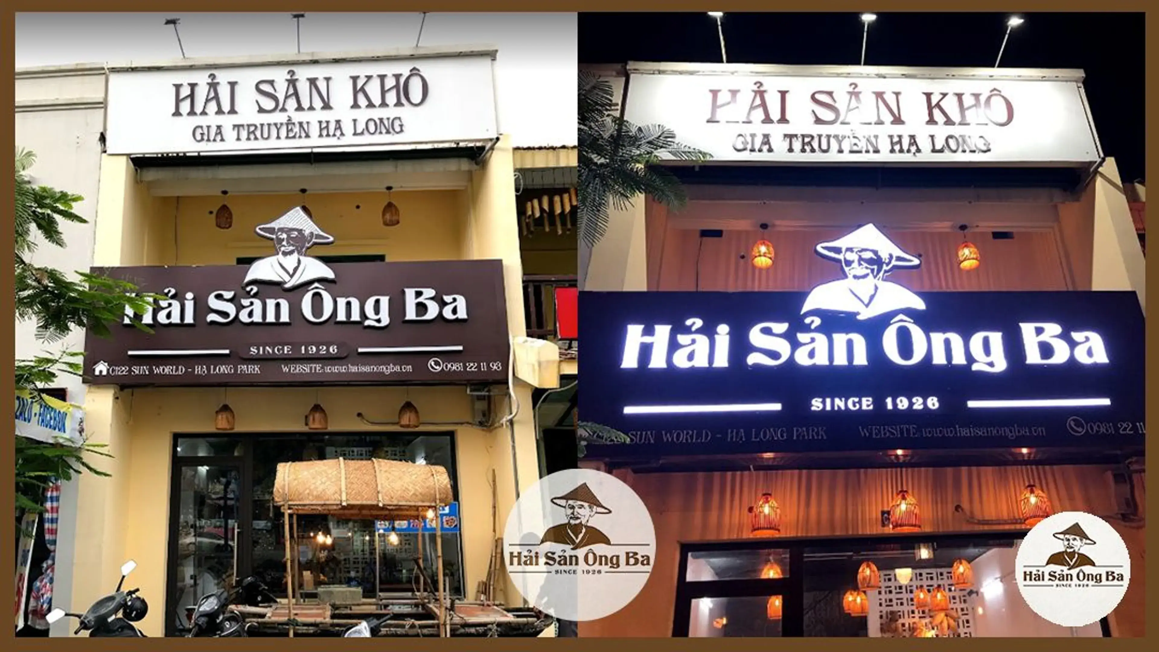 Không chỉ dừng lại ở việc bán hàng,Hải sản Ông Ba còn là nơi du khách có thể tìm hiểu sâu hơn về nguồn gốc và quy trình chế biến từng loại hải sản. Với kinh nghiệm lâu năm trong ngành,cửa hàng cung cấp đa dạng các sản phẩm hải sản khô chất lượng cao như cá khô,cá héo và nhiều đặc sản khác từ Hạ Long. Các sản phẩm được trưng bày đẹp mắt,giúp khách hàng dễ dàng lựa chọn món ưng ý. Hải sản Ông Ba có các chi nhánh thuận tiện tại Hạ Long và Hà Nội,mở cửa từ 7 giờ sáng đến 11 giờ tối hàng ngày.