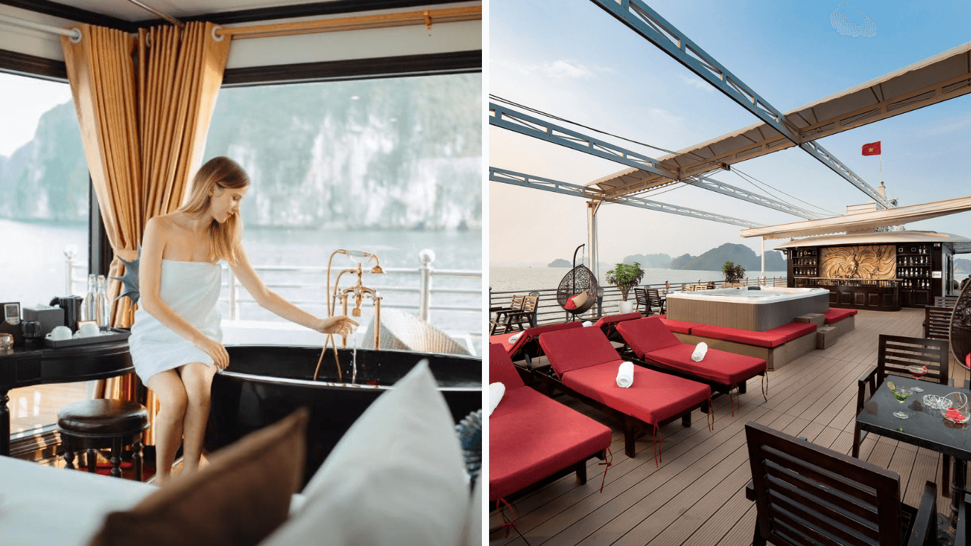 Khu vực ẩm thực trên du thuyền cũng được đầu tư kỹ lưỡng,phục vụ đa dạng các món ăn đặc sắc từ hải sản tươi sống đến ẩm thực quốc tế. Nhà hàng chính mang đến không gian sang trọng,với bàn ghế được sắp xếp tinh tế và ánh sáng trang nhã,giúp du khách có những bữa ăn ấm cúng và trọn vị. Các bếp viên chuyên nghiệp luôn đảm bảo chất lượng món ăn,kết hợp giữa hương vị truyền thống và sự sáng tạo độc đáo. Thực đơn phong phú được thay đổi theo mùa và địa phương,tạo nên sự mới mẻ cho mỗi bữa ăn. Ngoài ra,quầy bar và khu vực lounge cũng là nơi lý tưởng để thưởng thức đồ uống và giao lưu cùng bạn bè.