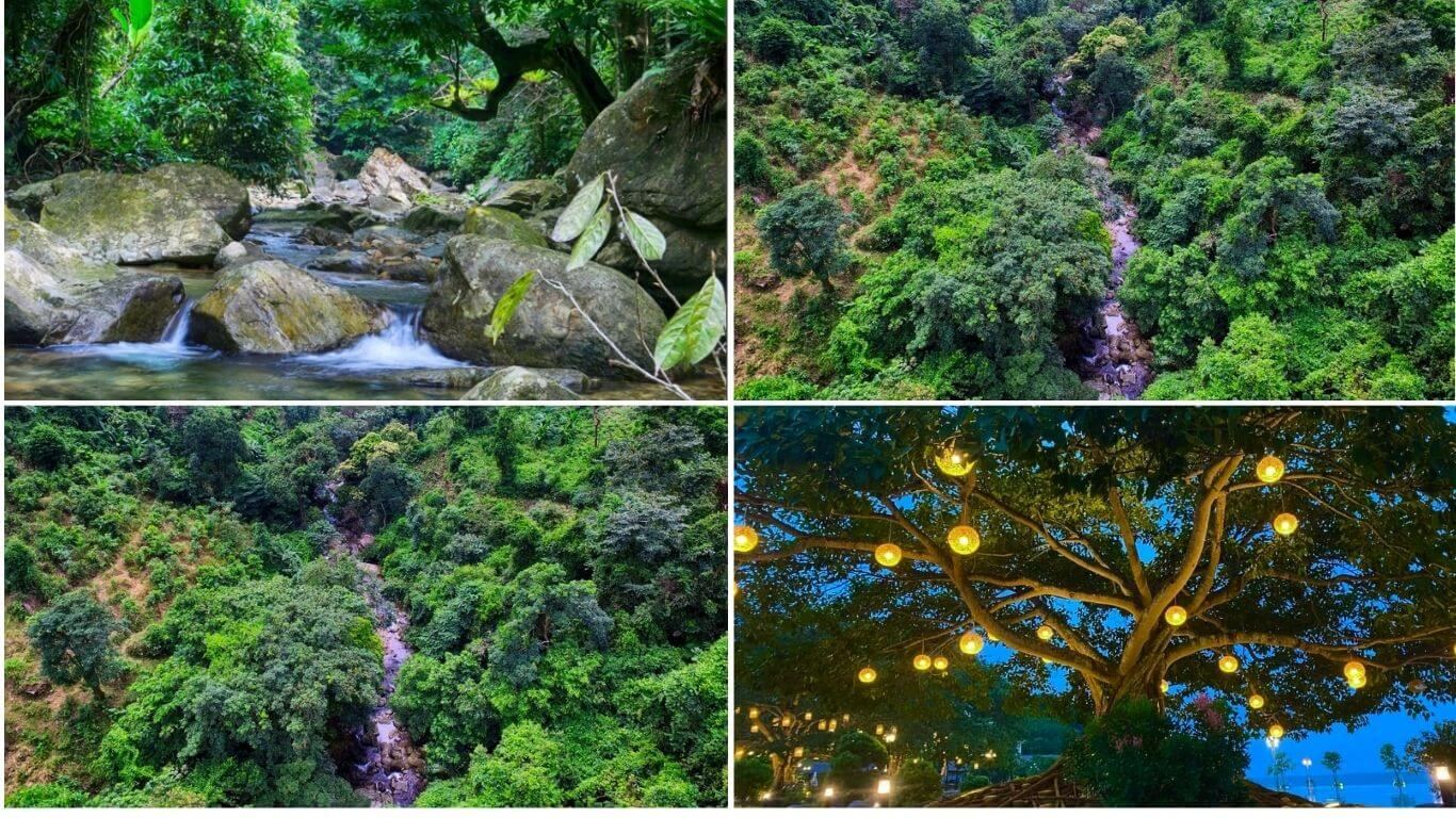 Hành trình đến với bãi tắm trên đảo đưa du khách qua con đường mòn xanh mát xuyên rừng,nơi gió biển hòa quyện cùng hương cây rừng,tạo cảm giác sảng khoái dễ chịu. Kết thúc đoạn đường rừng,trước mắt là biển xanh ngọc bích và bờ cát trắng tinh,vẽ lên một cảnh sắc tuyệt đẹp và thanh bình.