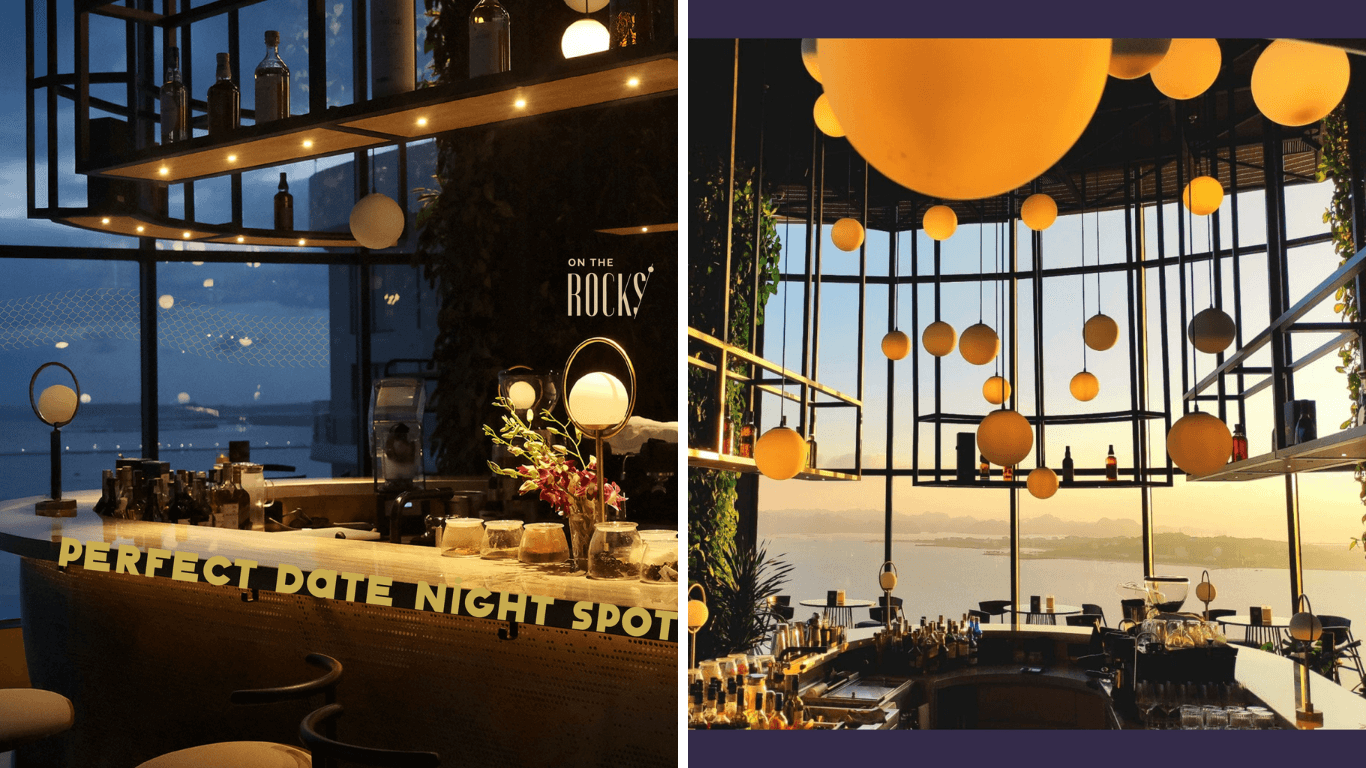 Vào buổi tối,không gian tại bar On The Rocks trở nên lãng mạn hơn khi thành phố lên đèn. Cảnh biển lấp lánh,những con thuyền nhẹ nhàng trôi trên mặt nước,kết hợp với âm nhạc du dương tạo nên một bầu không khí huyền bí,lý tưởng cho các buổi hẹn hò lãng mạn hay những buổi gặp mặt bạn bè. Đây là địa điểm tuyệt vời để chụp ảnh,ghi lại những khoảnh khắc đáng nhớ trong chuyến du lịch của bạn.