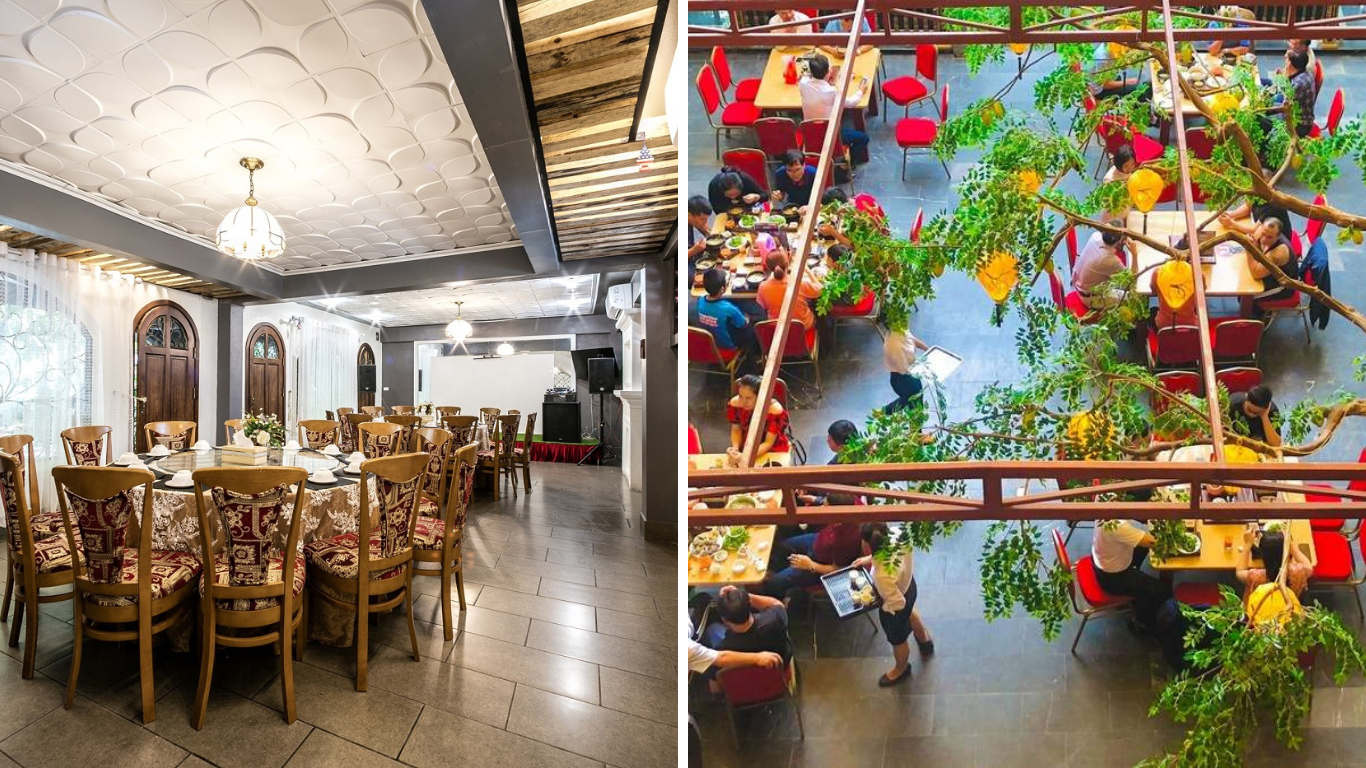 Chi nhánh ở Hạ Long có khu sân vườn mở,kết hợp tiểu cảnh hồ cá và cây xanh tạo nên không khí mát mẻ quanh năm. Vào buổi chiều,ngồi ăn trong ánh nắng nhẹ hay gió biển dịu dàng là một trải nghiệm rất thư giãn. Chi nhánh Uông Bí thì ấm cúng hơn,với các phòng riêng khép kín phục vụ hội họp hay tiệc gia đình. Mỗi khu vực đều được bố trí tỉ mỉ để phù hợp với từng mục đích sử dụng của thực khách.