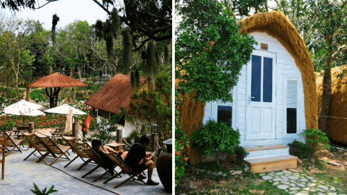 Coto Village tọa lạc ngay bên bãi Hồng Vàn,được thiết kế với phong cách bungalow mộc mạc và thân thiện. Các căn nhà gỗ lợp lá xếp liền nhau tạo thành dãy nhỏ xinh,hướng trọn ra biển xanh. Phía trước là hiên gạch đỏ đơn sơ,phía sau là khu vườn phủ đầy bóng mát cây cối. Không gian vừa gần gũi vừa đủ riêng tư để tận hưởng kỳ nghỉ trọn vẹn.
