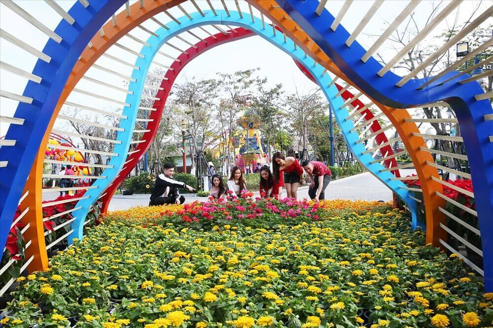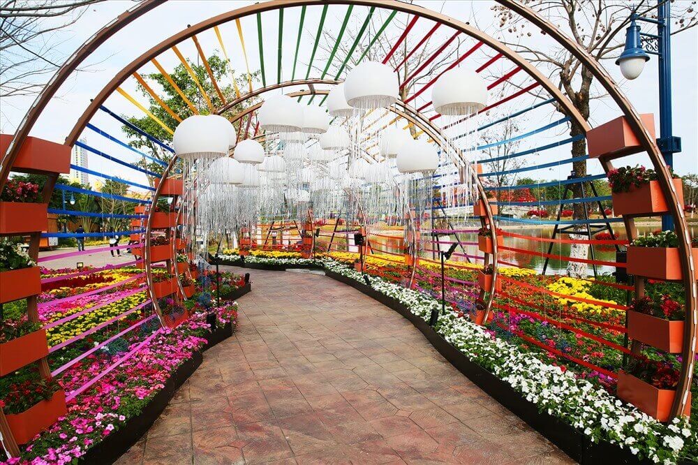 Điểm nhấn đáng chú ý nhất tại công viên chính là không gian được trang trí với hàng loạt loài hoa đẹp mắt. Các thảm hoa rực rỡ được bố trí hài hòa,tạo nên những góc nhìn đẹp đến mức tưởng như đang chiêm ngưỡng một bức tranh thiên nhiên sống động. Mỗi khu vực đều mang đến một cảm giác mới mẻ,như thể từng cánh hoa đều được đặt đúng vị trí để tạo nên sự hoàn hảo. Cảnh quan nơi đây kết hợp hài hòa giữa kiến trúc hiện đại và sự tươi mát của thiên nhiên. Điều này khiến cho mỗi bước chân mình đi qua đều như được trải nghiệm một điều mới lạ. Cả công viên tạo cảm giác thanh bình,làm cho mình quên đi nhịp sống bận rộn thường ngày.