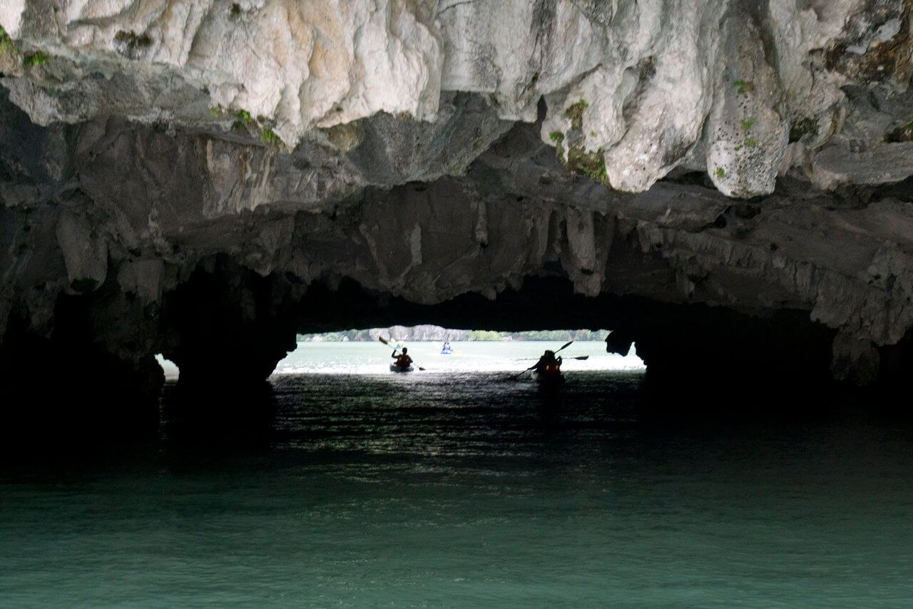 Nếu bạn không thích chèo kayak,đừng lo vì còn có một lựa chọn khác là đi thuyền tre do người dân địa phương chèo. Ngồi trên chiếc thuyền tre,bạn có thể thư thái ngắm nhìn cảnh vật xung quanh mà không cần phải mất sức. Người chèo thuyền thường rất thân thiện và sẵn lòng chia sẻ những câu chuyện thú vị về Hang Luồn,từ truyền thuyết cho đến những bí mật nhỏ mà ít ai biết đến. Qua những câu chuyện ấy,mình cảm thấy như được kết nối với văn hóa và con người nơi đây,hiểu hơn về cuộc sống bình dị nhưng giàu tình cảm của người dân vùng biển.