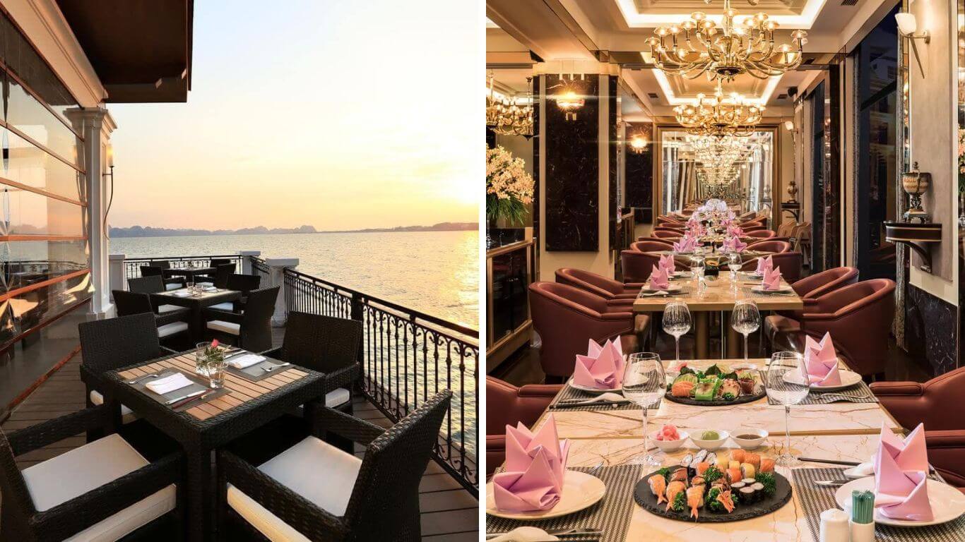 Khi đến với Vinpearl Hạ Long,du khách sẽ được tận hưởng sự đa dạng trong ẩm thực với nhiều nhà hàng phong phú. Từ những món ăn truyền thống Việt Nam đậm đà hương vị,hải sản tươi ngon đến các món Âu - Á tinh tế,mỗi nhà hàng đều mang đến trải nghiệm ẩm thực độc đáo. Bạn có thể lựa chọn thưởng thức bữa tối dưới ánh hoàng hôn rực rỡ hoặc bữa sáng ấm áp bên bờ biển,mỗi khoảnh khắc đều trở nên đặc biệt.