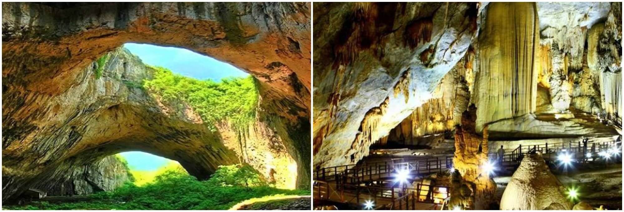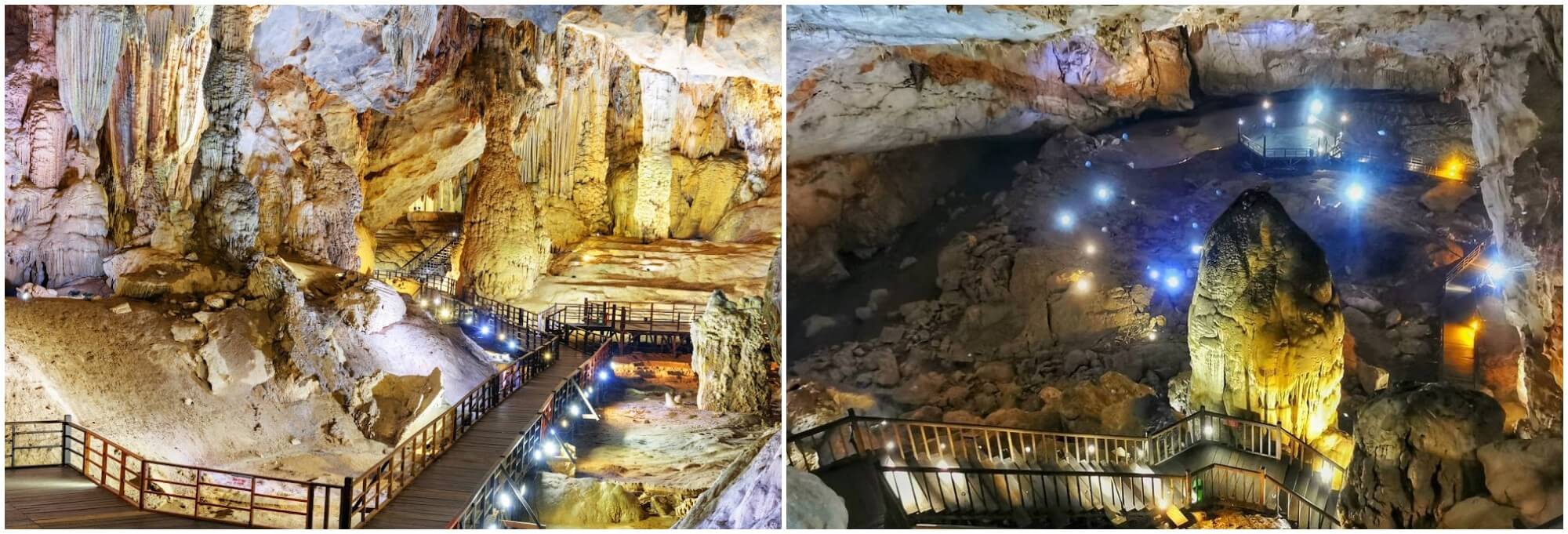 Cửa hang nhỏ hẹp,chỉ vừa đủ cho một người cúi mình bước qua. Nhưng phía sau lối đi khiêm tốn ấy là một không gian khổng lồ,tráng lệ vượt xa mọi hình dung. Không khí mát lạnh như vừa bước vào một thế giới khác. Từ trần hang cao hơn 100 mét,ánh đèn vàng chiếu nhẹ lên những khối nhũ đá kỳ ảo,tạo nên một khung cảnh vừa huyền bí vừa mê hoặc. Một cây cầu gỗ dài 1.000 mét uốn lượn giữa lòng động đưa du khách len lỏi qua từng ngóc ngách kỳ quan.