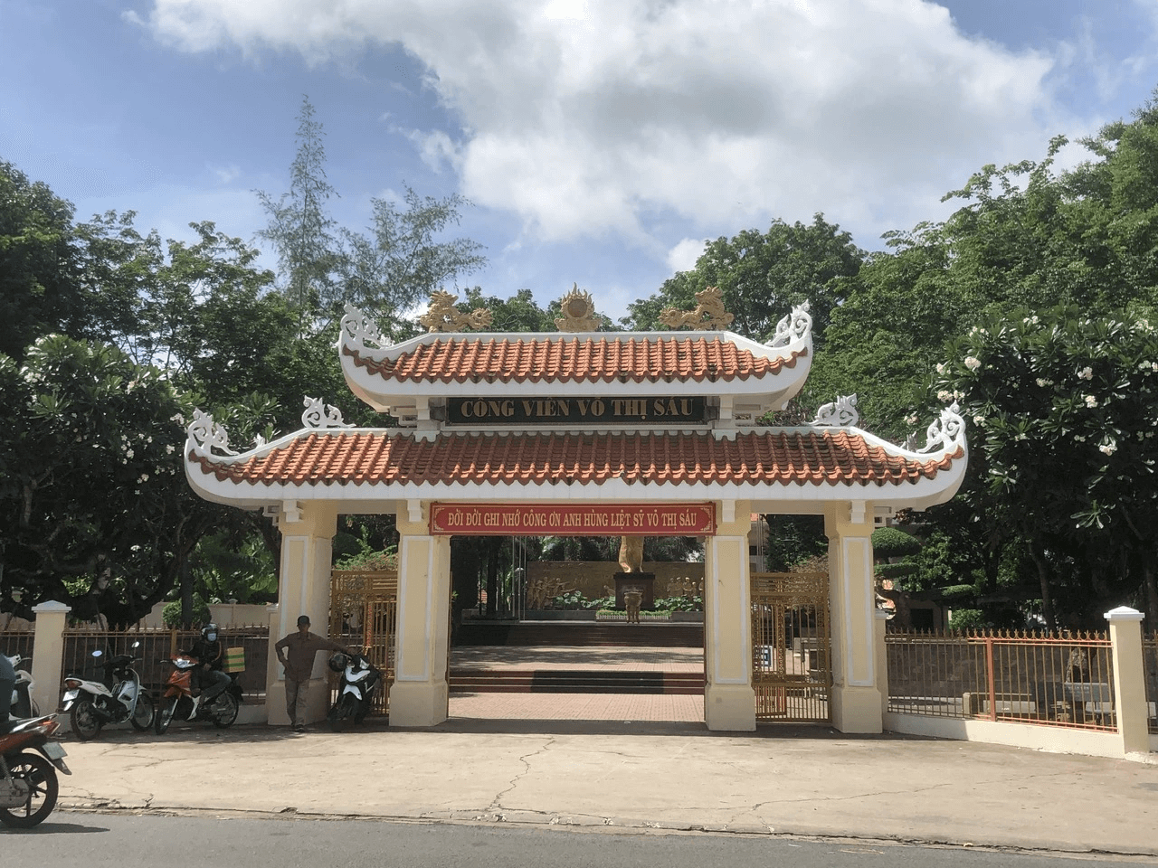 Đầu cổng công viên - đền thờ nữ anh hùng Võ Thị Sáu
