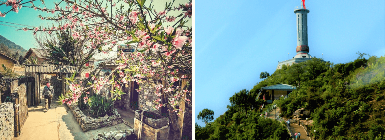 Là biểu tượng đánh dấu điểm cực Bắc của Việt Nam, cột cờ Lũng Cú được xây dựng trên đỉnh núi Rồng, thuộc một xã nhỏ ở huyện Đồng Văn, tỉnh Hà Giang. Nằm ở độ cao 1.470m so với mực nước biển, đây là một trong những địa điểm check in của nhiều bạn trẻ, đồng thời còn là điểm chinh phục của hầu hết tất cả các khách du lịch đến với Hà Giang. Để đến được cột cờ Lũng Cú bạn cũng cần phải sắp xếp đến Hà Giang du lịch, và cần phải có một lịch trình cụ thể, sớm nhất để tham quan nơi này vì cột cờ cách khá xa so với đoạn đường núi gần 200km. Nếu bạn muốn đến Hà Giang du lịch và ngắm nhìn được khung cảnh xinh đẹp nơi này thì một số thời điểm thích hợp nhất mà bạn nên cân nhắc chính là: Từ tháng 1 đến tháng 3: Vào khoảng thời gian này hoa mận, hoa đào, hoa cải vàng sẽ nở rộ, bạn sẽ chiêm ngưỡng được biệt danh “miền đá nở hoa” là như thế nào, nên đến đây vào thời gian này bạn sẽ được tham quan và tận hưởng những cảnh hoa đua nhau nở cực đẹp mắt. Bạn cũng có thể đến vào tháng 5 mùa nước đổ hay tháng 6 - 8 là khoảng mùa hè với thời tiết khô ráo, dễ dàng di chuyển và thuận lợi hơn trong việc tham quan cột cờ Lũng Cú. Hoặc bạn cũng có thể đến Hà Giang vào tháng 10 - 12 để tham quan cột cờ đồng thời đây là khoảng thời gian mùa hoa tam giác mạch nở trên cao nguyên đá Đồng Văn, bạn sẽ ngắm nhìn được những khung cảnh tuyệt vời nhất vào thời gian này. Điều đầu tiên khi bạn muốn đến tham quan cột cờ Lũng Cú Hà Giang là phải có một tấm vé máy bay đi Hà Nội. Sau khi đã đến Hà Nội rồi thì việc bạn cần làm sau đó là tìm cho mình một chiếc xe khách để đến thành phố Hà Giang của tỉnh Hà Giang, từ đây bạn cũng có thể thuê cả xe máy hoặc ô tô để lên đến Lũng Cú. Còn nếu bạn đang ở khu vực các tỉnh miền Bắc, bạn có thể lựa chọn đi xe khách, xe máy hoặc ô tô để đến cột cờ Lũng Cú theo đường quốc lộ 4C để đến Quản Bạ sau đó từ đây sẽ lên đến Đồng Văn. Nếu đã đến Đồng Văn rồi bạn chạy thẳng sẽ đến xã Sà Phìn, tiếp tục đi đến bạn sẽ gặp một ngã ba nếu đi thẳng bạn sẽ đến phố cổ Đồng Văn còn nếu ngược lại sẽ hướng về Lũng Cú. Được xây dựng trên đỉnh núi Rồng, nên để lên được đỉnh núi bạn cần trải qua 839 bậc thang, được chia làm 3 chặng, ở mỗi chặng sẽ có khu nhà chờ để du khách có thể nghỉ chân hoặc ngắm cảnh phía dưới núi. Sau khi leo hơn 800 bậc thang, bạn chắc chắn sẽ sững người đến tự hào khi chứng kiến cột cờ Lũng Cú với lối kiến trúc được xây dựng theo hình bát giác, có chiều cao 33.15m và lá cờ Tổ quốc 54m2 luôn tung bay trên đỉnh núi Rồng. Xung quanh thân cột cờ là hình mặt trống đồng Ðông Sơn và dưới chân cột cờ là tám tấm phù điêu minh họa cho các thời kỳ lịch sử vẻ vang của đất nước. Từ trên cột cờ nhìn xuống, bạn sẽ có cảm giác như được ngắm nhìn bờ cõi nước Nam ta trong tầm mắt. Được cảm nhận được không khí se lạnh của núi rừng Đông Bắc. Đứng ở núi Rồng, cảm giác như núi rừng Đông Bắc hòa cùng mây trời cao rộng, không những vậy, chỉ cần ngước mắt nhìn lên là hình ảnh tự hào dân tộc lại càng nâng cao lên với màu sáng tươi của lá quốc kỳ thiêng liêng tung bay. Vừa tạo cảm giác tự hào vừa lại hưng phấn khi chinh phục được đỉnh cao của một cột mốc lớn.