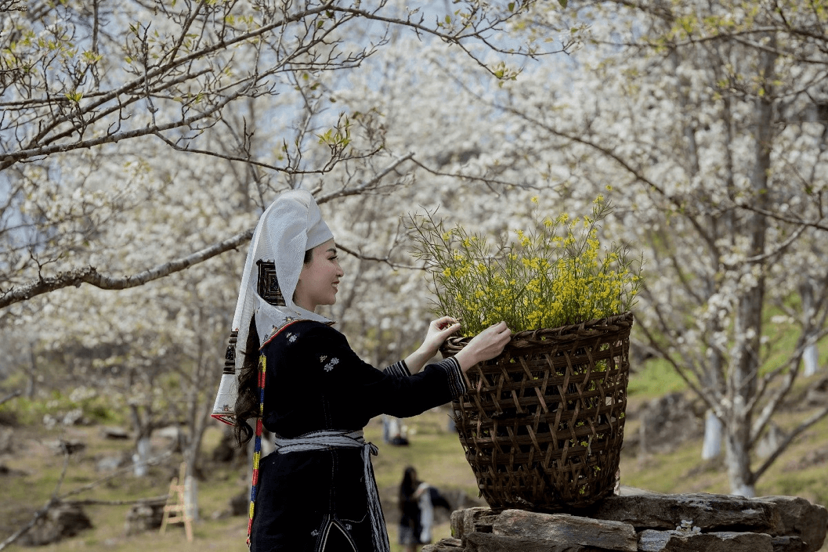 Chính bởi thế,Hồng Thái mùa lê nở như rộn ràng hơn. Chúng ta dễ dàng bắt gặp những nhóm bạn trẻ đang thích thú tạo dáng bên nhành hoa lê chỉ với những chiếc Smartphone gọn nhẹ. Đâu đó bên những cây lê nở rộ là cảnh những thiếu nữ Dao Tiền đang chỉnh trang lại xiêm y với nụ cười tỏa nắng thu hút mọi ánh nhìn. Màu trắng tinh khôi của hoa lê hòa quyện trong sắc trắng của trang phục quần áo dân tộc tạo nên một khung cảnh đầy mơ màng,quyến rũ. Không gian như hư,như thực nơi đây đã trở thành nguồn cảm hứng sáng tác của không ít nhiếp ảnh gia và trong khoảnh khắc nào đó họ thực sự thăng hoa và có những bức ảnh đẹp đến nao lòng.