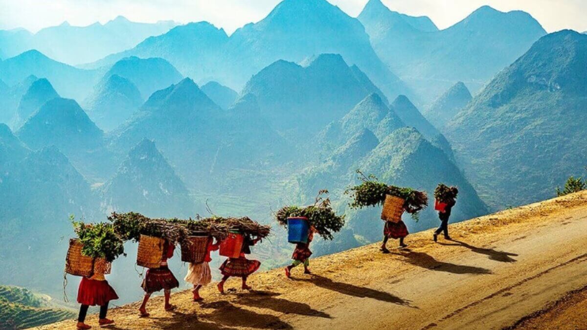 Traveling to Ha Giang is not only about admiring the majestic and famous landscapes. This is also an opportunity for visitors to learn more about the simple life of the people here. Life in the high mountains is harsh and miserable,but the people here work hard in the fields and enthusiastically in the deep forests. The children try to travel long distances to get to school but still keep a bright smile on their faces.
