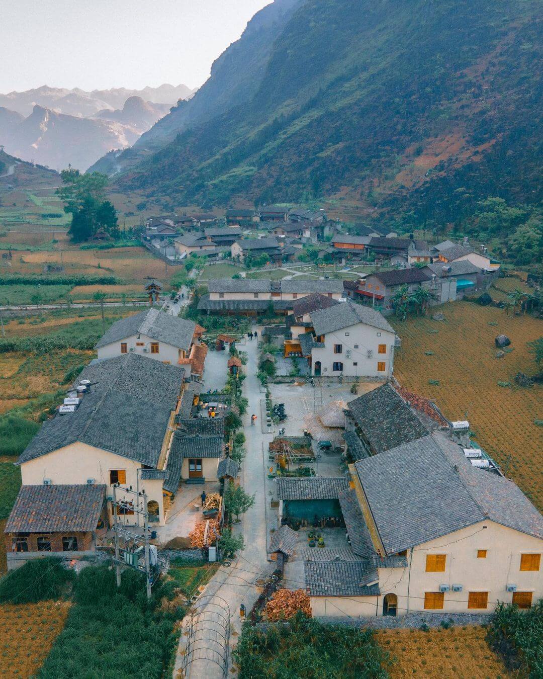 Thị trấn Đồng Văn nằm lọt thỏm giữa bốn bề núi phủ mây phong của cao nguyên đá. Chỉ có khoảng vài chục ngôi nhà nằm rải rác quanh khu trung tâm và xen kẽ vào những vách đá dựng đựng ở giữa trời xanh. Vẻ đẹp của phố cổ Đồng Văn được nổi lên như một bức tranh thủy mạc, trữ tình với đủ những tông màu của thiên nhiên cùng hội tụ. Những ngôi nhà cổ được người dân địa phương dựng lên liền kề bên vách núi như một sự thử thách của sức mạnh, ý chí quyết tâm của con người trước tạo hóa. Phố cổ Đồng Văn được hình thành từ những năm đầu của thế kỷ XX, trải qua những biến thiên của lịch sử, thăng trầm của thời cuộc dường như khu phố vẫn như được nét quyến rũ, hoang sơ của buổi ban đầu. Phố được dựng lên bởi người Tày, người Mông và cả người Hoa. Ngày nay, khi đến du lịch Hà Giang bạn sẽ không khó để bắt gặp hình ảnh những ngôi nhà được thiết kế theo lối nhà dài, nhà mái lợp ngói âm dương. Qua thời gian, phố cổ Đồng Văn đón nhiều cư dân khác nhau đến sinh sống và làm ăn. Điều này đã làm cho khu phố có sự dung hòa, tổng hợp và tiếp biến nhiều hình thái văn hóa của các sắc dân khác nhau. Đến với phố cổ Đồng Văn, bạn không chỉ được xem những chiếc đèn lồng được giăng như mắc cửi trên các tuyến phố mà còn tận mắt chứng kiến những phiên chợ vùng cao với những tiếng khèn, điệu nhạc và sản vật tiêu biểu của vùng cao nguyên đá. Vào những đêm cuối tuần, không gian trong các quán chợ trở nên rộn rã bằng tiếng hát câu hò của những đôi trai gái. Họ trao nhau điệu múa, câu hò giao duyên bên ánh lửa bập bùng của phiên chợ tình vùng cao. Phố cổ Đồng Văn không chỉ là một địa chỉ giao thương của người dân trong vùng mà nó đã trở thành một “trung tâm thương mại” của một vùng cao nguyên rộng lớn. Không chỉ có người dân địa phương, người dân ở các vùng lân cận mà ngay cả những người đi buôn bán ở miền xuôi cũng muốn lên đây mua bán sản vật. Du lịch Hà Giang đến với phố cổ Đồng Văn cũng là địa chỉ tổ chức những lễ hội tryền thống của người Tày, Mông và đồng bào các dân tộc thiểu số trên vùng núi Tây Bắc. Trong những trang phục truyền thống các thiếu nữ người Mông, Tày, Pu Péo, Lô Lô… tay trong tay với điệu nhạc trao duyên. Điểm nhấn của khu phố cổ là chợ Đồng Văn, chợ được xây bằng nguyên liệu chủ yếu là đá từ năm 1920, qua gần một thế kỷ đến nay khu chợ vẫn còn giữ gìn nét văn hóa khá nguyên vẹn. Để ngắm phố cổ Đồng Văn từ trên cao bạn hoàn toàn có thể thu gọn toàn bộ khung cảnh của khu phố trong tầm mắt. Những dãy nhà được xếp thành hình chữ U lợp ngói âm dương chay dọc theo triền núi. Nếu hỏi thử xem du lịch Hà Giang mùa nào đẹp nhất? Thì hãy đến Hà Giang trong mùa hoa tam giác mạch, bạn hoàn toàn có thể đắm mình trong không gian của núi rừng và những triền đồi trắng dãy một màu, cùng mùi hương ngát dịu của loài hoa nức danh vùng Tây Bắc này. Ở phố cổ Đồng Văn khi đêm về, bạn có thể ghé vào một quán cafe để thưởng thức vị ngon của cafe và lắng nghe từng tiếng gió rít bên những triền đồi vang vọng lại. Mùi hương của loài hoa tam giác mạch sẽ ru bạn đắm chìm trong sự mê mẫn của tiếng khèn, tiếng sáo và những ánh lửa bập bùng trong tiếng nhạc du dương. Về tổng thể phố cổ Đồng Văn có kiến trúc theo kiểu người Hoa là khá phổ biến, chủ yếu lợp ngói âm dương, vì kèo được thiết kế chắc chắn. Đặc biệt, đá dường như là nguyên liệu chủ yếu và trở nên phổ biến trong xây dựng. Những cối đá, tường đá, cột đá được đầu tư xây dựng nên không gian cảnh quan các tuyến phố rất gần gũi với thiên nhiên, ít bị tác động của bàn tay con người. Hầu như mỗi ngôi nhà ở khu phố cổ điều có treo đèn lồng, có lẽ đây là nét văn hóa riêng có của đồng bào thiểu số và hình ảnh của ngọn lửa cũng giúp xua tan đi cái lạnh buốt của vùng cao nguyên đá về đêm. Theo kinh nghiệm du lịch Hà Giang, thì mỗi năm, tỉnh Hà Giang điều tổ chức nhiều lễ hội mang đậm dấu ấn truyền thống của đông bào thiểu số tại Đồng Văn, trong đó phải kể đến “Đêm phố cổ”. Đến với đêm phố cổ các bạn sẽ có cơ hội xem những chiếc váy thổ cẩm, những chiếc đèn lồng, những món ăn truyền thống của đồng bào dân tộc thiểu số. Hà Giang, một vùng đất du lịch ấn tượng với nhiều địa chỉ văn hóa, lịch sử vẫn còn khá nguyên vẹn. Đặt chân đến đây, cũng là đến với vùng đất của trời mây non nước trữ tình, mọi thứ điều rất hoang sơ. Vùng đất của những cánh đồng hoa Tam giác mạch, của món Thắng cố, của thổ cẩm thiêu tay và tiếng khèn của đôi lứa trao duyên trên phố cổ Đồng Văn – cao nguyên đá.