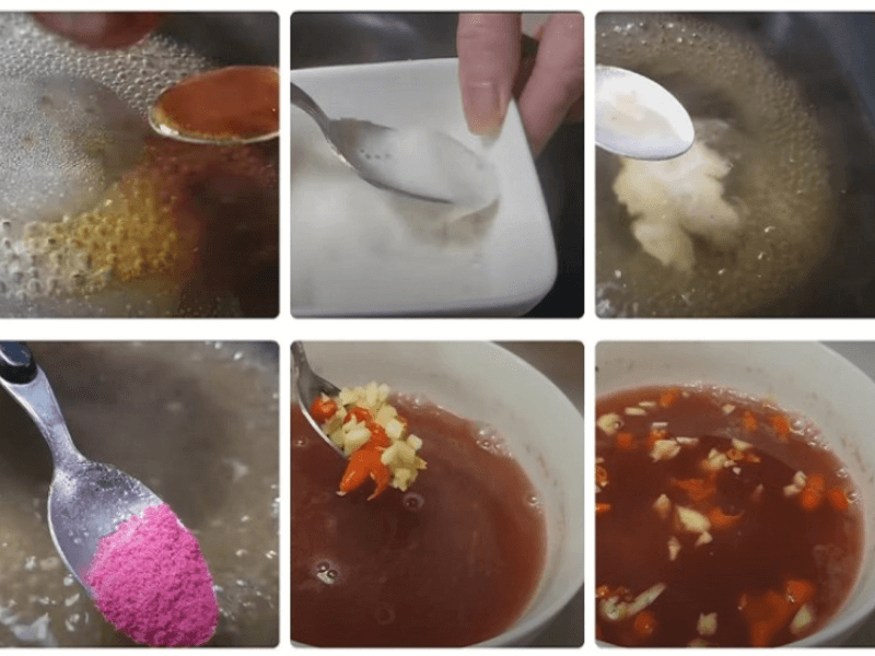 Pha hỗn hợp chua ngọt: Hòa tan đường,dấm,muối,hạt nêm vào một nồi nhỏ.
